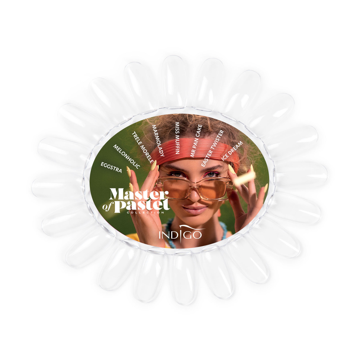 Wzornik Master of Pastel to idealny sposób na zaprezentowanie Twoim Klientkom całej wiosennej kolekcji od Indigo. Oczaruj je słodkimi, pastelowymi odcieniami różu, błękitu i fioletu. Dodaj blasku stylizacjom dzięki lakierom w słonecznych, żółto-pomarańczowych kolorach! Zaprezentuj nowe odcienie zarówno w błysku, jak i macie, bo to on będzie rządził tej wiosny. Przejdź na słodką stronę manicure, zanim zrobią to inni.