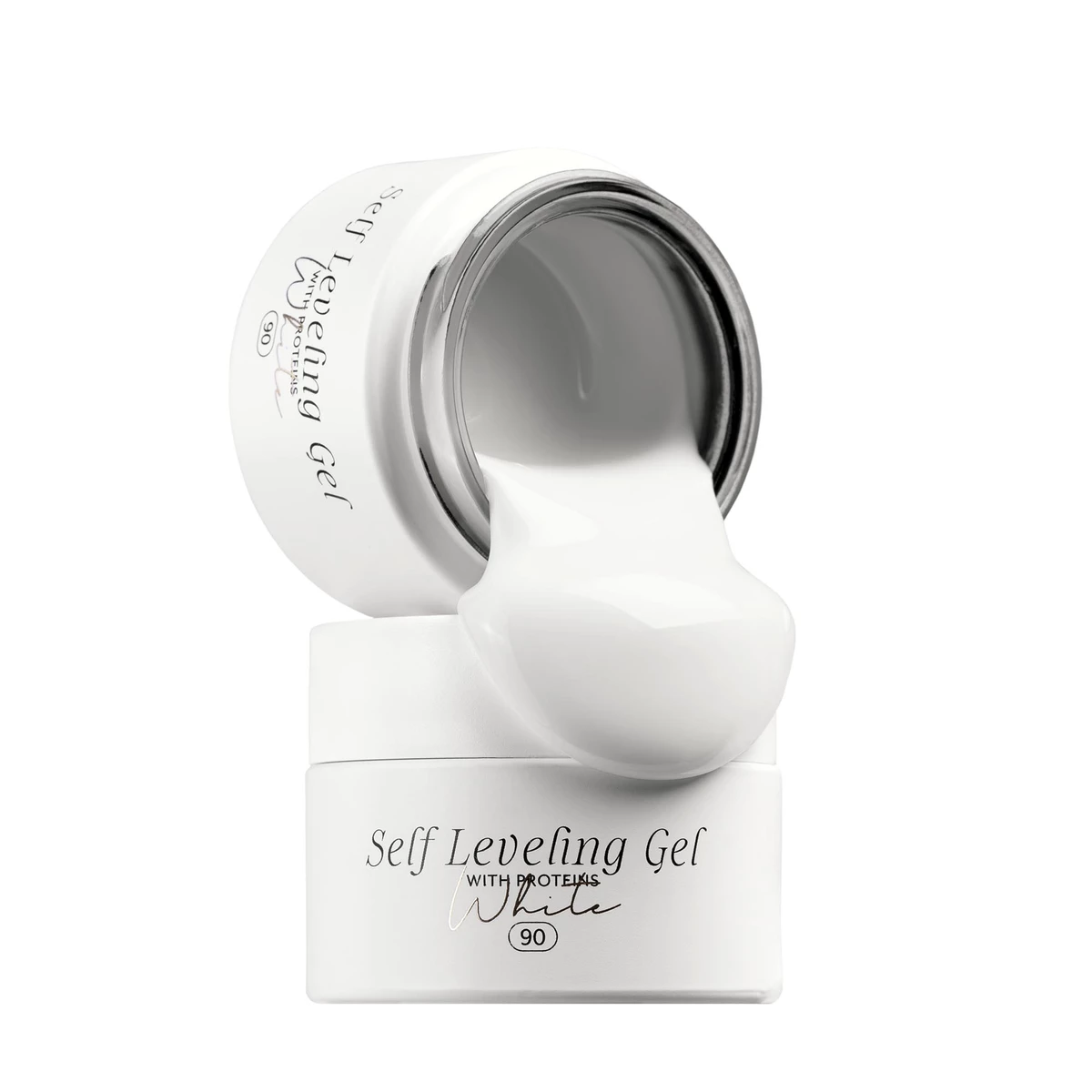 Żel samopoziomujący Self Leveling Gel With Proteins 90 White to produkt o średnio gęstej konsystencji, który można wykorzystywać zarówno do tworzenia salonowych przedłużeń na dowolną długość, uzupełnień czy utwardzania naturalnej płytki. Przy prawidłowej pracy żelem ryzyko zalania skórek będzie zmniejszone. Przy prawidłowo rozłożonym żelu piłowanie materiału również zostanie zminimalizowane.