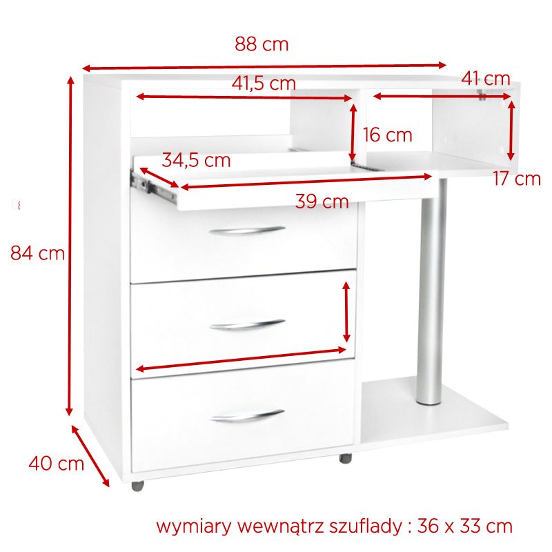 Profesjonalny unit podologiczny, solidnie wykonany z szufladami wraz ze specjalną szufladą na sterylizator UV-C oraz półką na frezarkę. Dopełnieniem całości jest uchwyt na lampe lupę TUBE a metalowo-gumowe kółka gwarantują mobilność. Pomocnik został stworzony aby ułatwić pracę osobie wykonującej zabieg.