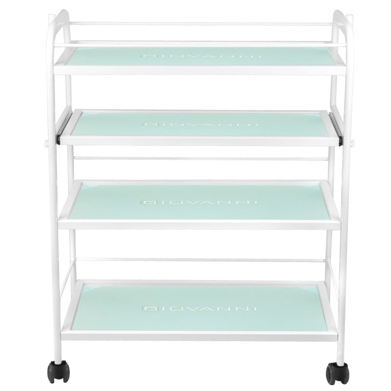 Stolik 1015A posiada cztery szklane półki z wygrawerowanym logo GIOVANNI