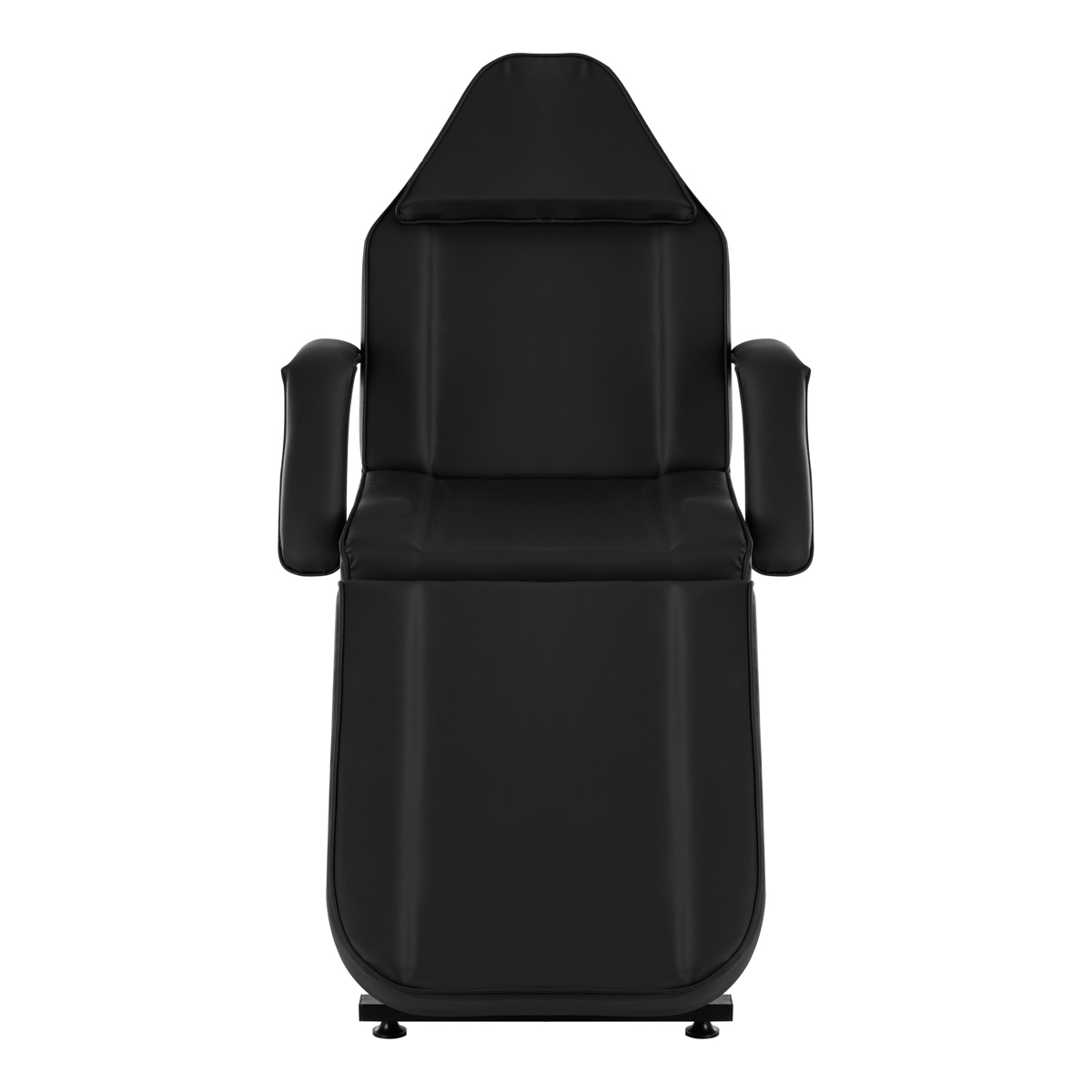 Praktyczne rozwiązania dla wygody pracyUkryty pod odpowiednio wyprofilowaną poduszką otwór w zagłówku sprawia, że fotel doskonale sprawdza się zarówno podczas zabiegów na twarz, jak i tych przeprowadzanych na plecach. Stabilne podłokietniki gwarantują użytkownikowi odpowiednie podparcie. Elementy te, dzielone w połowie, są ruchome, dlatego dobrze układają się przy zmianach pozycji oparcia, a dodatkowo mogą być w łatwy sposób zdjęte.