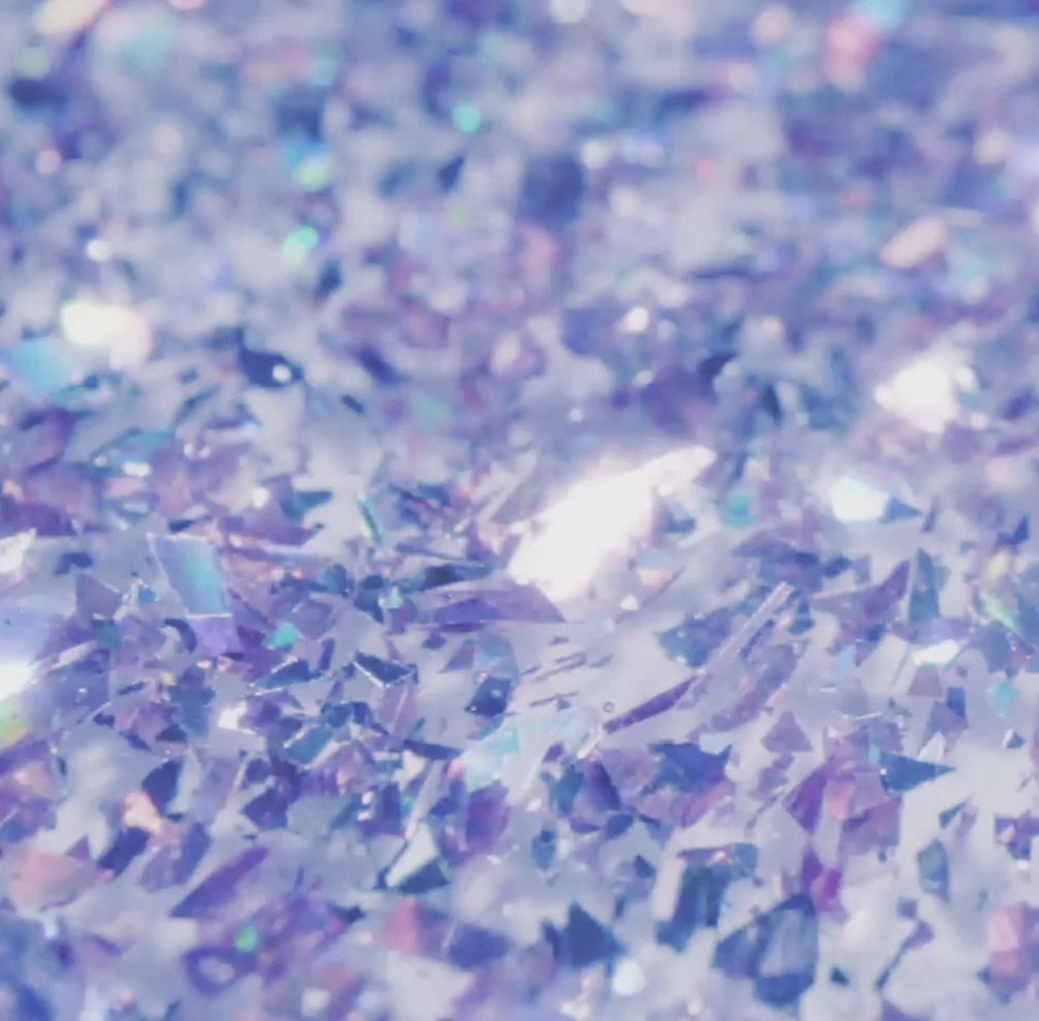 Matte top with blue confetti petals imitating an Arctic ice floe, which emerge only in the glow of light - ps. we don't mean a speck of FLASH!