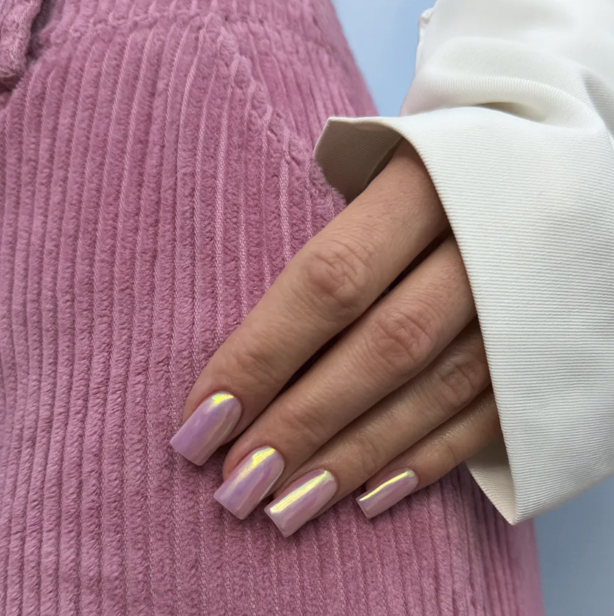 Zanurz się w słodkim uroku Pyłku Candy, który zachwyca różowym odcieniem opalizującym na zielono. Jego wyjątkowa gra barw tworzy efekt tafli, dzięki któremu paznokcie zyskują lustrzany połysk i subtelną, bajkową aurę. To idealny wybór dla miłośniczek delikatnych, ale przyciągających wzrok stylizacji.