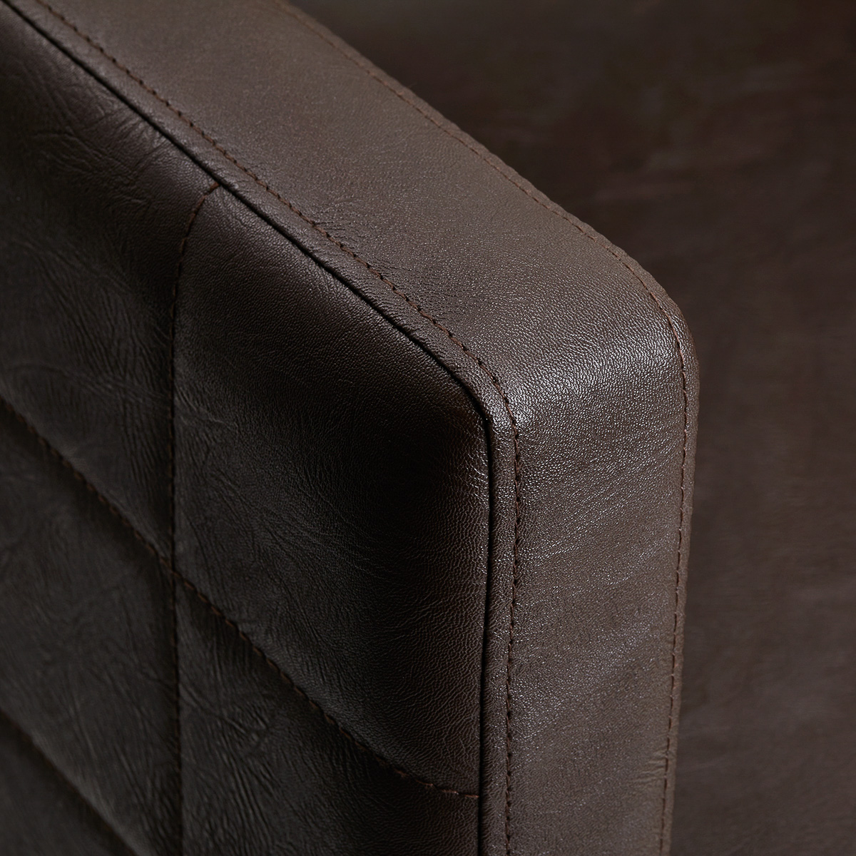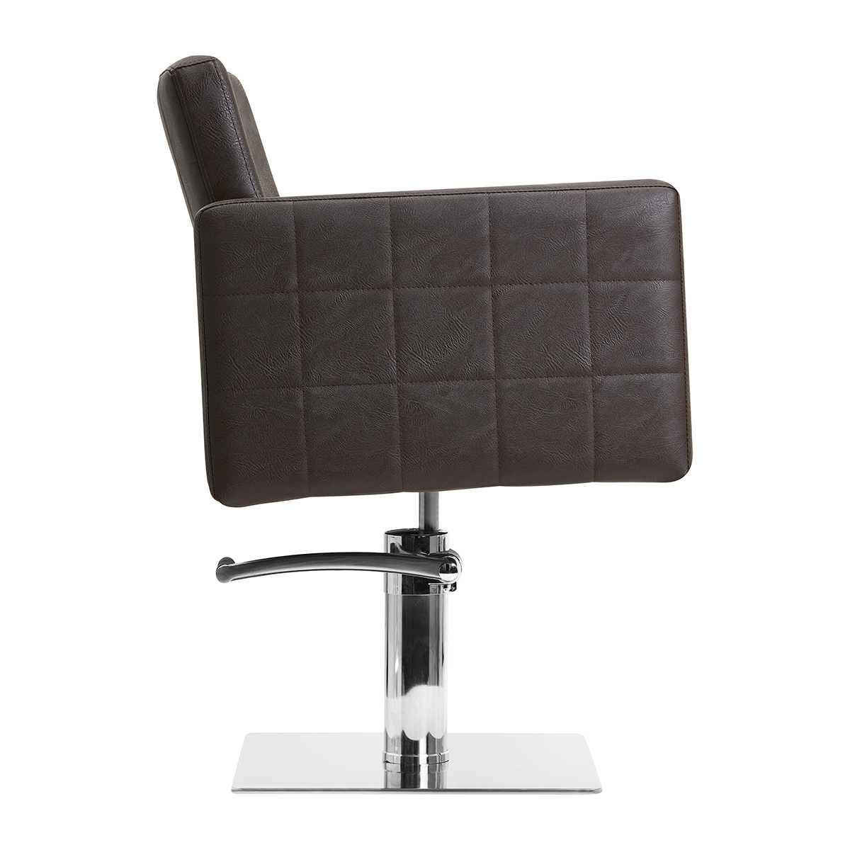 Funkcjonalny mebel o wyjątkowym designieWygodny fotel wypełniony jest trwałą i odporną na odkształcenia pianką, co zapewnia wieloletnie użytkowanie, wysoki komfort oraz wygodę nawet podczas wielogodzinnych zabiegów. Obicie wykonane jest z przyjemnej w dotyku skóry syntetycznej, a zastosowanie takiego materiału sprawia, że sprzęt jest odporny na wilgoć, wytrzymały oraz bardzo łatwy w czyszczeniu. Pokrycie w odcieniach brązu wraz z ciekawymi wizualnie elementami nadają mu wyjątkowego charakteru. Sprzęt wyróżnia elegancki design, który sprawia, że fotel będzie doskonale prezentować się w wielu wnętrzach salonów fryzjerskich.