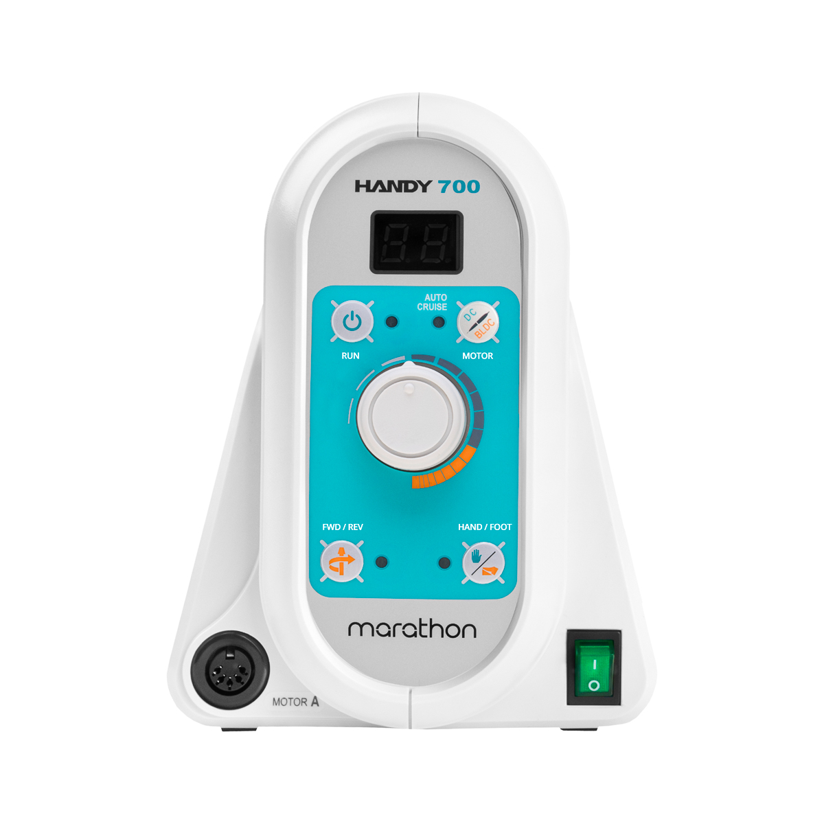 Profesjonalne rozwiązanieFrezarka protetyczna Handy 700 oferuje dużą moc 100W oraz cichą pracę. Zapewnia dużą prędkość do 50 tysięcy obrotów na minutę. Praca z tą frezarką jest wyjątkowo komfortowa dzięki temu, iż w mikrosilniku głowicy został zastosowany system redukcji hałasu, umniejszonego o 20% w porównaniu do konwencjonalnych modeli. Budowa bazy jest ergonomiczna, posiada praktyczny uchwyt do przenoszenia oraz pojemnik na głowicę.