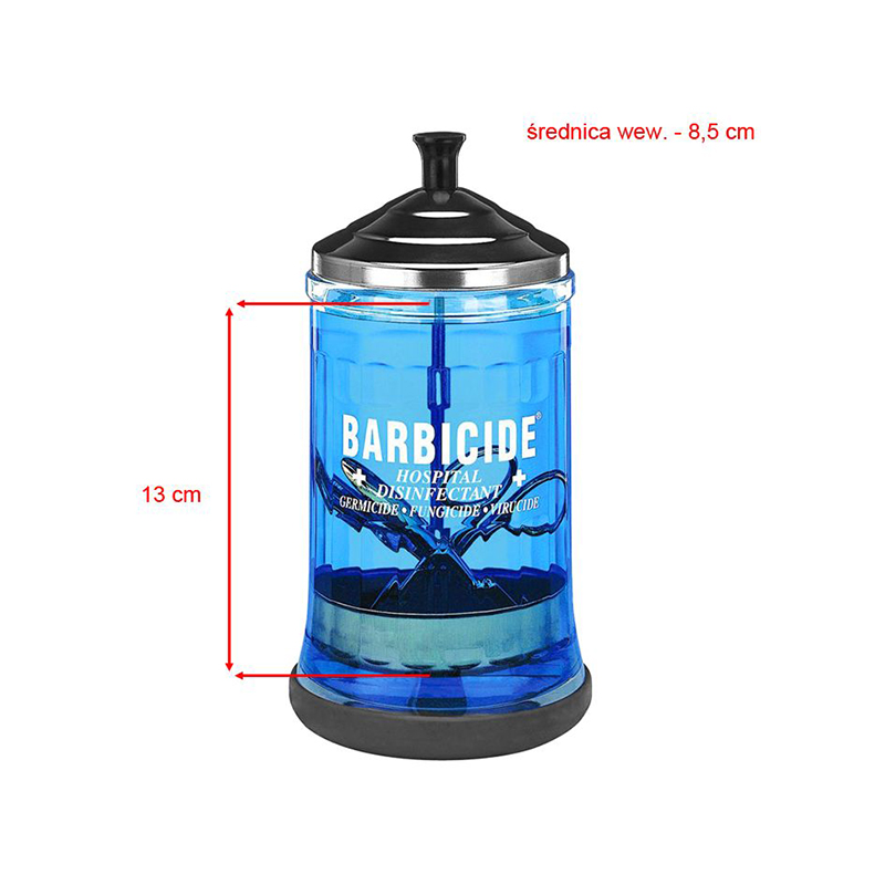 Charakterystyczny pojemnik BARBICIDE z przezroczystym niebieskim płynem dezynfekcyjnym to symbol gabinetu profesjonalnego i na wysokim poziomie. Pojemnik Barbicide znany w gabinetach kosmetycznych i salonach fryzjerskich całego świata.