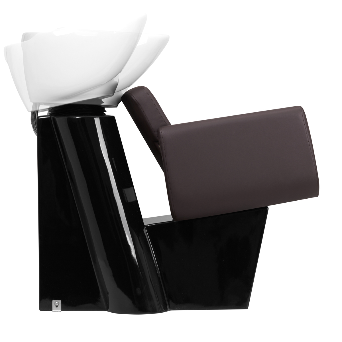 Profesjonalna myjka fryzjerska -stabilna, niezwykle wygodna, solidnie wykonana. Nowoczeny design czyni z niej piękne dopełnienie wyposażenia nowoczesnego salonu fryzjerskiego. Siedzisko wykonane z wysokiej jakości brązowej ekoskóry. Misa myki w kolorze białym, z możliwości regulacji swojego nachylenia. Myjnia w kolorze czarno-brązowo-białym.