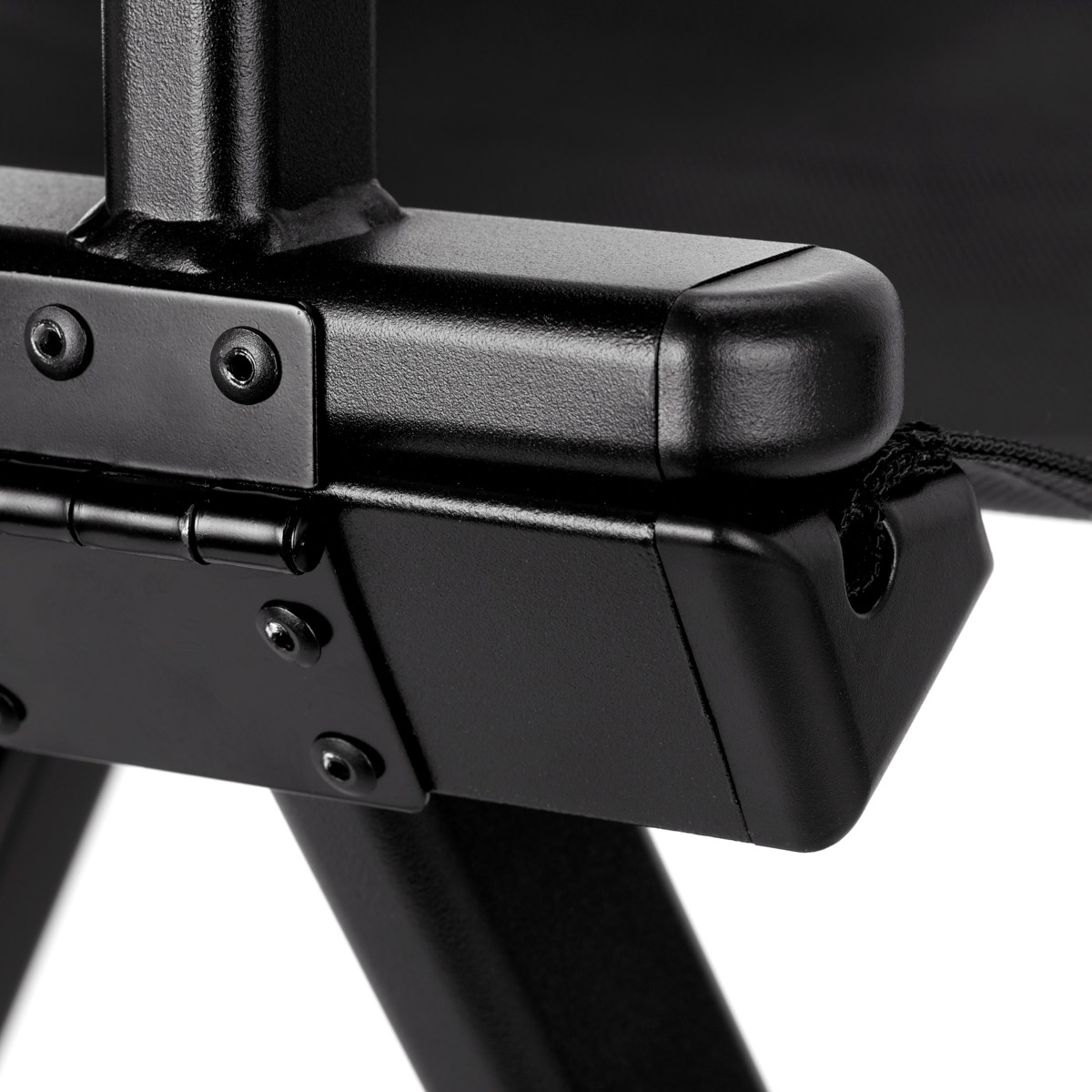 Szerokie spektrum zastosowaniaKrzesło posiada system blokady, dzięki czemu w trakcie użytkowania zapewnia stabilność. Po odblokowaniu w łatwy sposób można je złożyć, co znacznie ułatwia przechowywanie oraz transport. Minimalistyczne podłokietniki oraz podnóżek o szerokości niemal 40 cm zapewniają użytkownikowi wygodę i komfort w trakcie wykonywania makijażu czy charakteryzacji. Wraz z oparciem pozwalają one zająć odpowiednią pozycję, co ma znaczenie zwłaszcza w trakcie dłuższych zabiegów. Zastosowane rozwiązania sprawiają, że krzesło jest niezwykle praktyczne, daje mnóstwo przestrzeni do pracy osobom oferującym usługi mobilne i sprawdzi się w nawet najbardziej nietypowych warunkach.