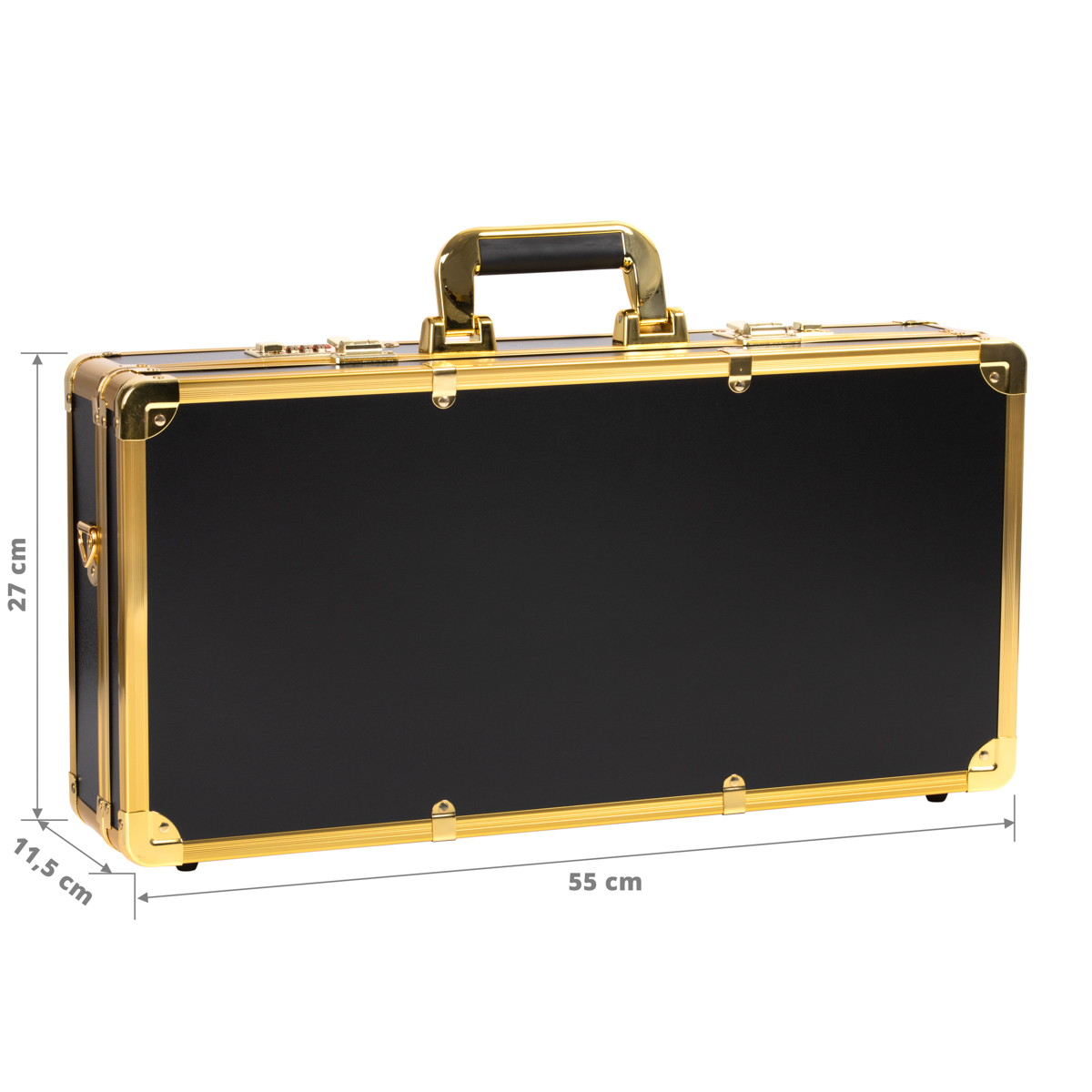 Aluminiowa walizka fryzjerska z podwójnym zamkiem szyfrowym i wygodnym uchwytem. Powierzchnie metalowe lakierowane. Walizka pomieści różne akcesoria i narzędzia fryzjerskie - nożyczki, grzebienie, szczotki do włosów, suszarkę, maszynki do strzyżenia itp. Do walizki dołączony jest odpinany pasek na ramię.