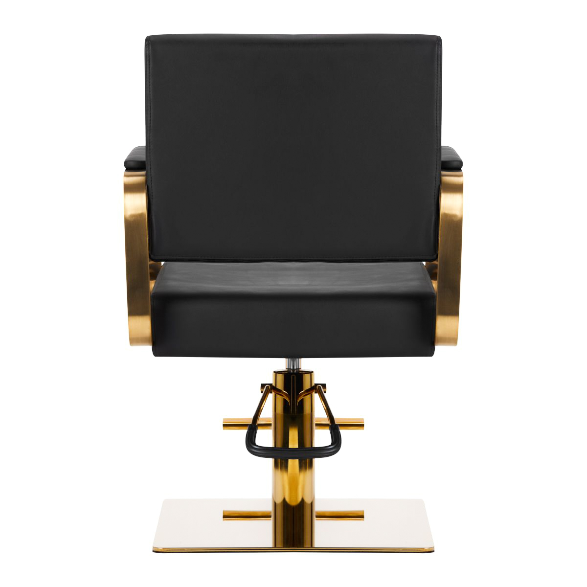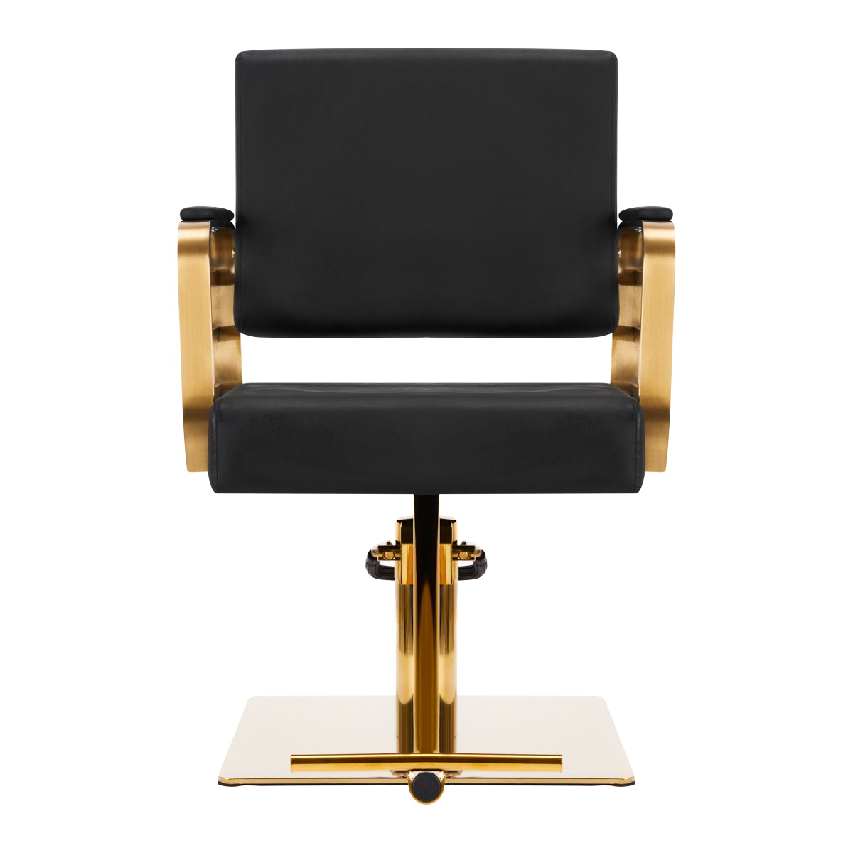 Bardzo komfortowy, idealnie pasujący do wnętrz eleganckich salonów. Regulowany w płaszczyźnie pionowej. Bardzo stabilny i solidny. Obicie z najwyższej jakości ekoskóry koloru czarnego. Dopełnieniem elegancji tego fotela jest złote wykończenie elementów metalowych.