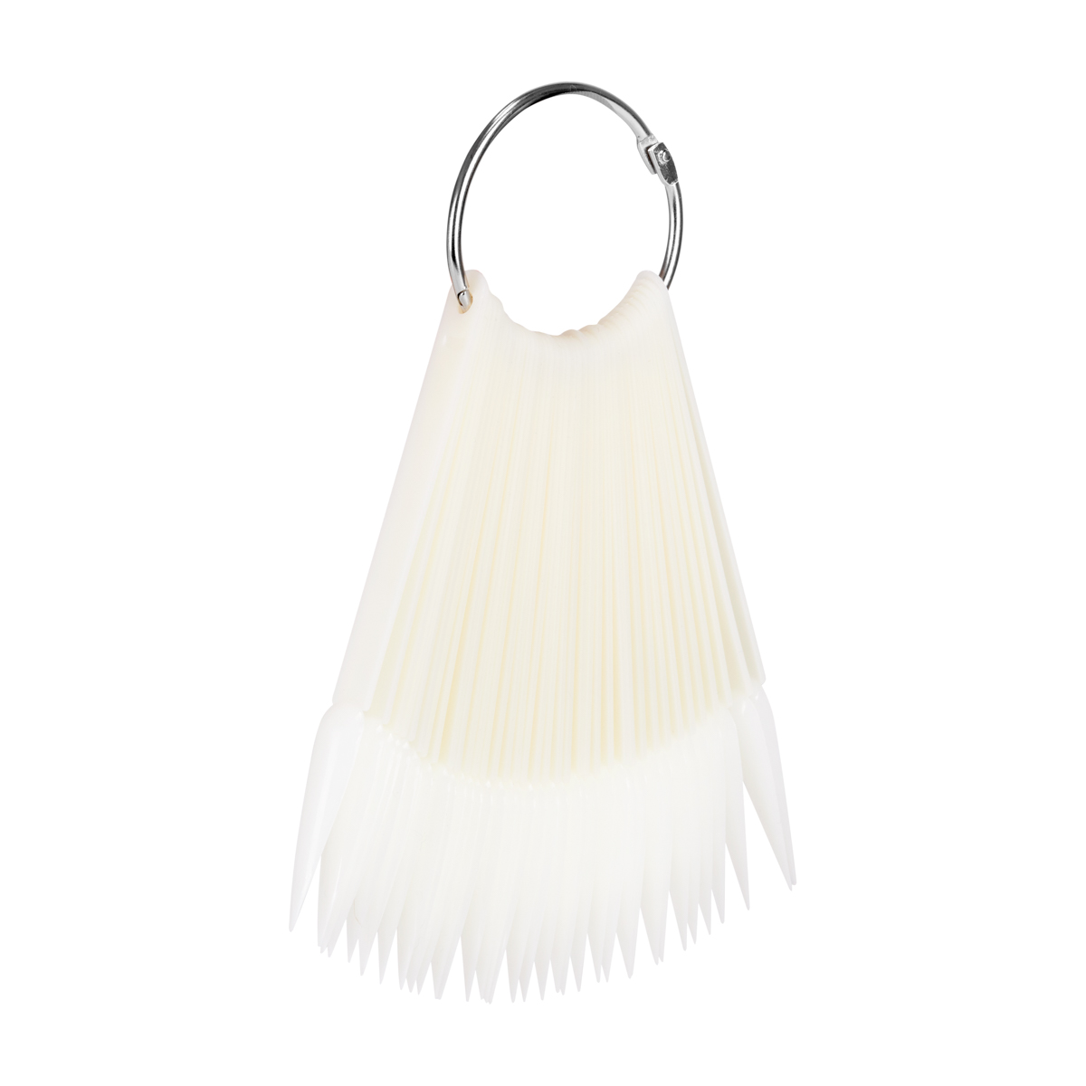 Estetyczna prezentacja kolorów i zdobieńWzornik w mlecznym kolorze pozwala na estetyczną prezentację wszelkich kolorów lakierów klasycznych oraz hybrydowych, pyłków czy żeli. Składa się z 50 pojedynczych tipsów o spiczastym kształcie. Spięty jest praktycznym, rozpinanym kołem, które ułatwia przechowywanie całości. Każdy z tipsów wykonano z trwałego tworzywa sztucznego.