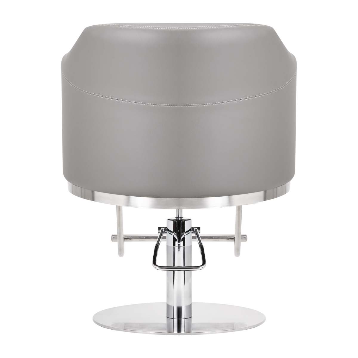 Przemyślane rozwiązaniaSolidna, okrągła podstawa zapewnia stabilność w trakcie użytkowania. Gładka powierzchnia sprawia, że element ten jest łatwy do utrzymania w czystości. Szerokie siedzisko, wypełnione pianką o odpowiedniej twardości, gwarantuje wysoki komfort użytkowania i wygodę nawet podczas wielogodzinnych zabiegów. Podłokietniki znajdują się na wysokości, która pozwala na prawidłowe ułożenie barków klienta – sprawia to, że nie chowa głowy w ramionach ani się nie garbi – wyraźnie usprawniając zabiegi, w tym strzyżenie. Ułatwia to precyzyjne wykonywanie usług.