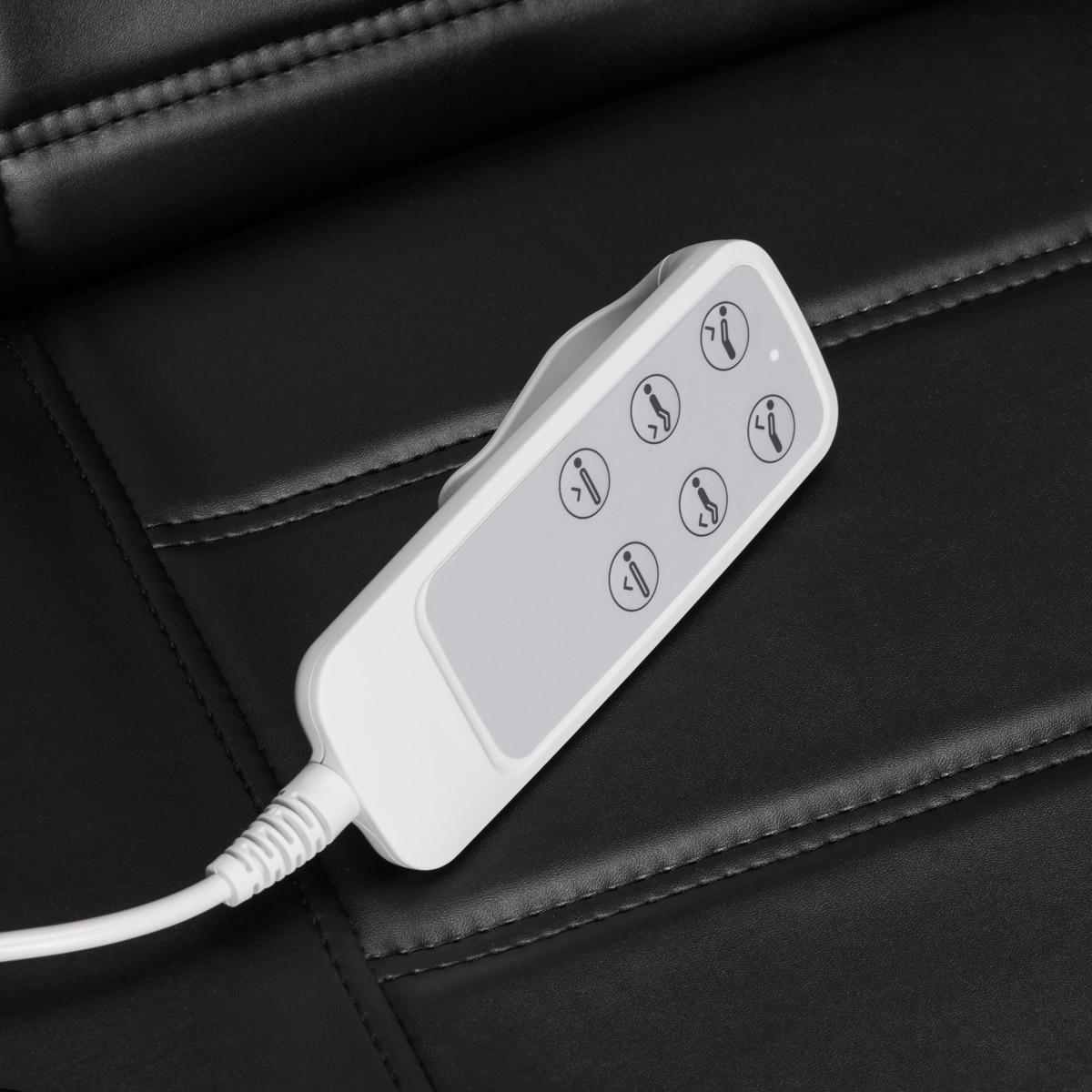 Elektryczny fotel kosmetyczny Sillon Lux 273B wyposażony jest w 3 siłowniki sterowane za pomocą pilota na przewodzie, co pozwala na płynne dostosowywanie go w trzech płaszczyznach – posiada regulację wysokości i kątów nachylenia oparcia oraz podnóżka. Wysokość siedziska regulowana jest w zakresie od 65 cm do 84 cm, a przy całkowitym rozłożeniu fotel osiąga długość ponad 2 metrów. Sprzęt swobodnie można rozłożyć do pozycji leżanki, co w połączeniu z otworem w zagłówku ukrytym pod zaślepką znacząco zwiększa jego funkcjonalność przy usługach na twarz i ciało.