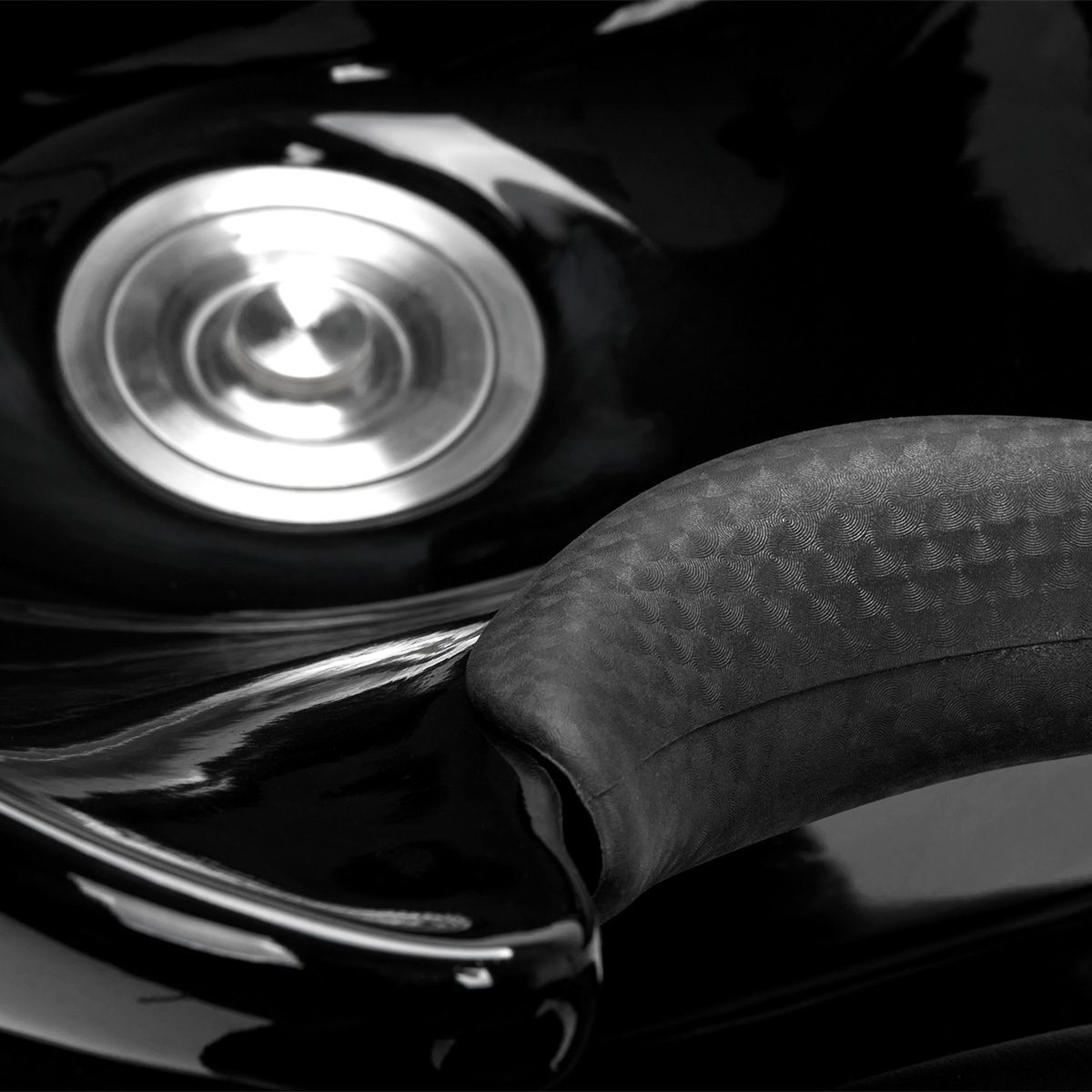 Odpowiednio wyprofilowany fotel wypełniony trwałą pianką zapewnia wysoki komfort użytkowania i relaks klienta na czas usługi. Pokrycie ze skóry syntetycznej w odcieniach czerni zapewnia wieloletnią wytrzymałość oraz łatwość czyszczenia. Oryginalny, elegancki wygląd myjni wraz z polerowanymi elementami w odcieniach złota nadają przestrzeni niepowtarzalnego wyrazu. W zestawie znajduje się kompletna armatura, w tym bateria, słuchawka prysznicowa oraz dedykowane węże, aby zapewnić całkowity zestaw narzędzi do pracy.