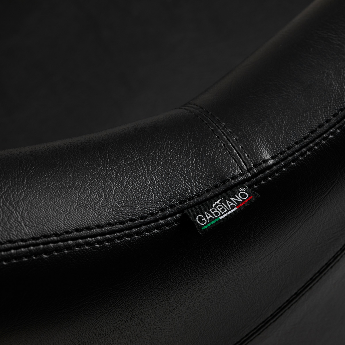 Elegancja i wysoki komfort użytkowaniaFotel wypełniony jest pianką, która jest trwała i nie odkształca się, zapewniając komfortowe użytkowanie przez długi czas. Obicie wykonane jest z przyjemnej w dotyku imitacji skóry o specyficznej strukturze. Dzięki użyciu takiego materiału, sprzęt jest odporny na wilgoć, wytrzymały i łatwy w czyszczeniu. Pokrycie w odcieniach czerni oraz ozdobne powierzchnie metalowe lakierowane w barwach złota nadają mu wyraz ponadczasowej elegancji. Wyróżniające go klasyczne wykończenie sprawia, że będzie doskonale prezentować się w niemal każdej przestrzeni.