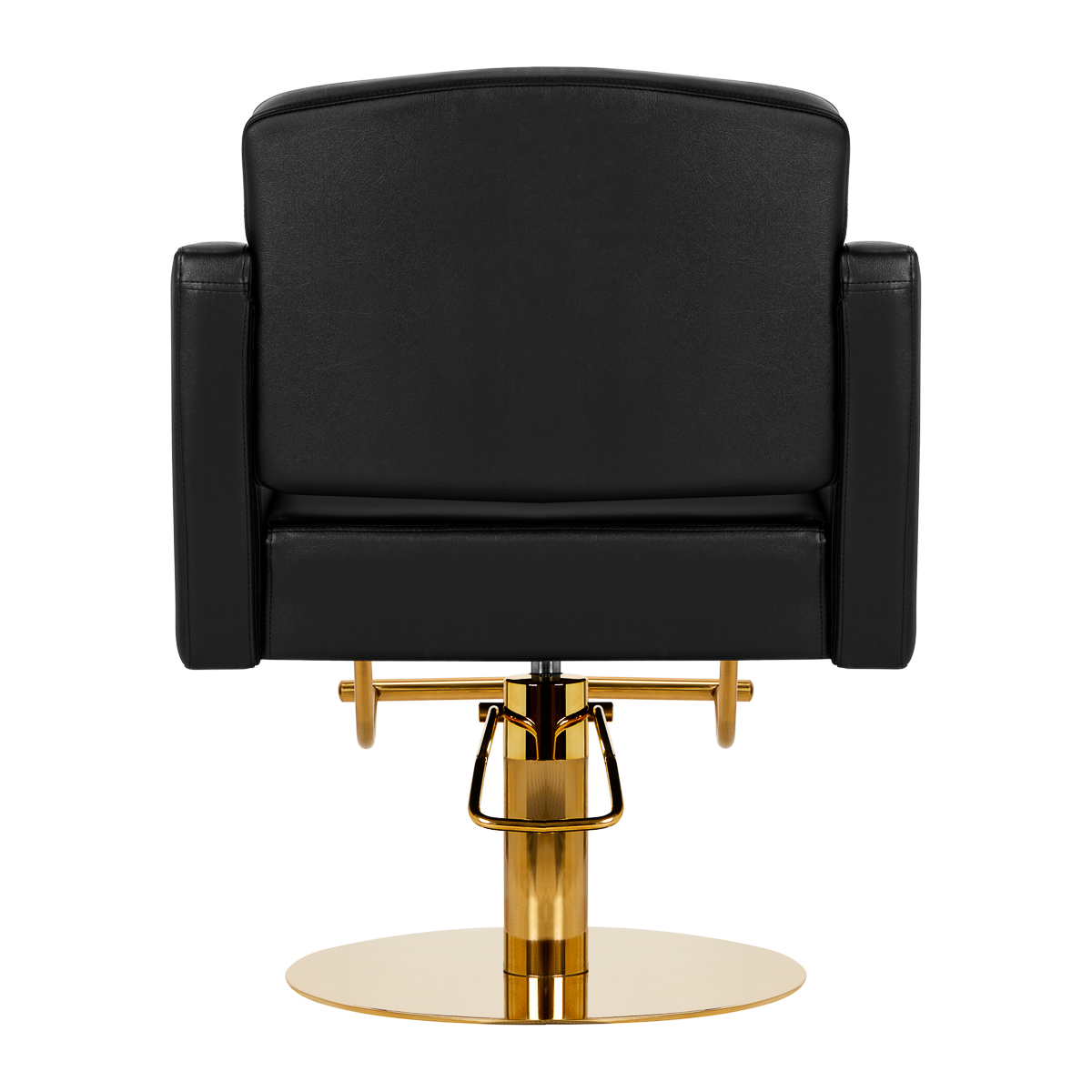 Prostota i wysoki komfort użytkowaniaWygodny mebel wypełniony jest odporną na odkształcenia pianką, z kolei obicie wykonane zostało z przyjemnej w dotyku skóry syntetycznej. Zastosowane materiały zapewniają komfortowe użytkowanie przez długi czas i sprawiają, że sprzęt jest odporny na wilgoć, wytrzymały oraz łatwy do utrzymania w czystości. Pokrycie w odcieniach czerni oraz elementy w barwach złota nadają mu wyraz ponadczasowej elegancji. Fotel fryzjerski Gabbiano Turyn wyróżnia prosty design, co sprawia, że fotel będzie doskonale prezentować się w wielu profesjonalnych salonach.
