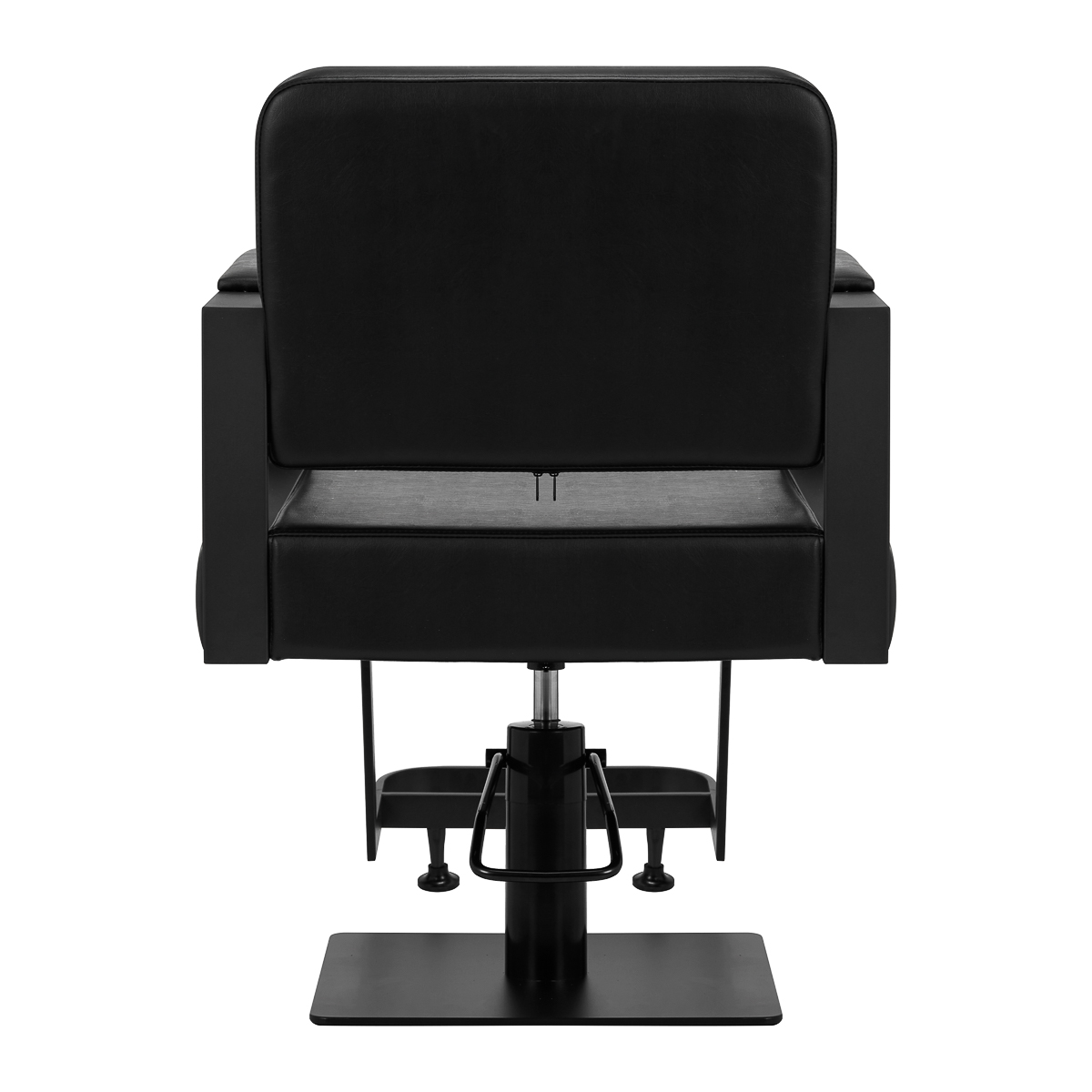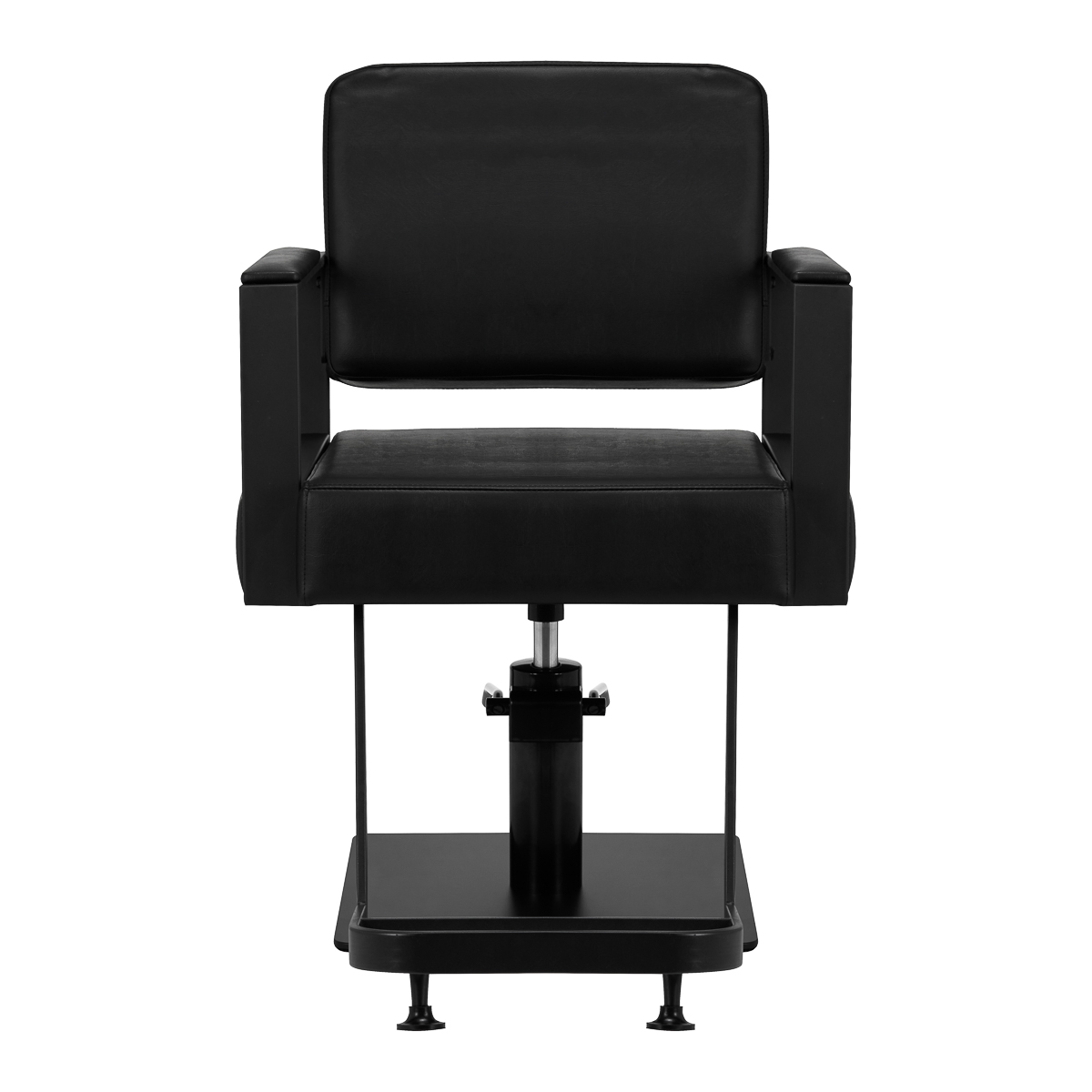 Rozwiązania dla ułatwienia pracyWyposażenie fotela w mechanizm pełnego obrotu sprawia, że praca fryzjera staje się bardziej efektywna i wygodna. Solidna, płaska podstawa w kształcie kwadratu gwarantuje stabilność w trakcie użytkowania. Matowo wykończona, gładka powierzchnia nadaje elementowi elegancki wygląd i sprawia, że ten jest łatwy do utrzymania w czystości. Wygodne siedzisko z wypełnieniem z pianki zapewnia wysoki komfort użytkowania, nawet podczas wielogodzinnych zabiegów. Geometryczne, częściowo tapicerowane podłokietniki pozwalają na prawidłowe ułożenie barków klienta – sprawia to, że nie chowa głowy w ramionach ani się nie garbi – wyraźnie ułatwiając wykonywanie precyzyjnych zabiegów, w tym strzyżenia.