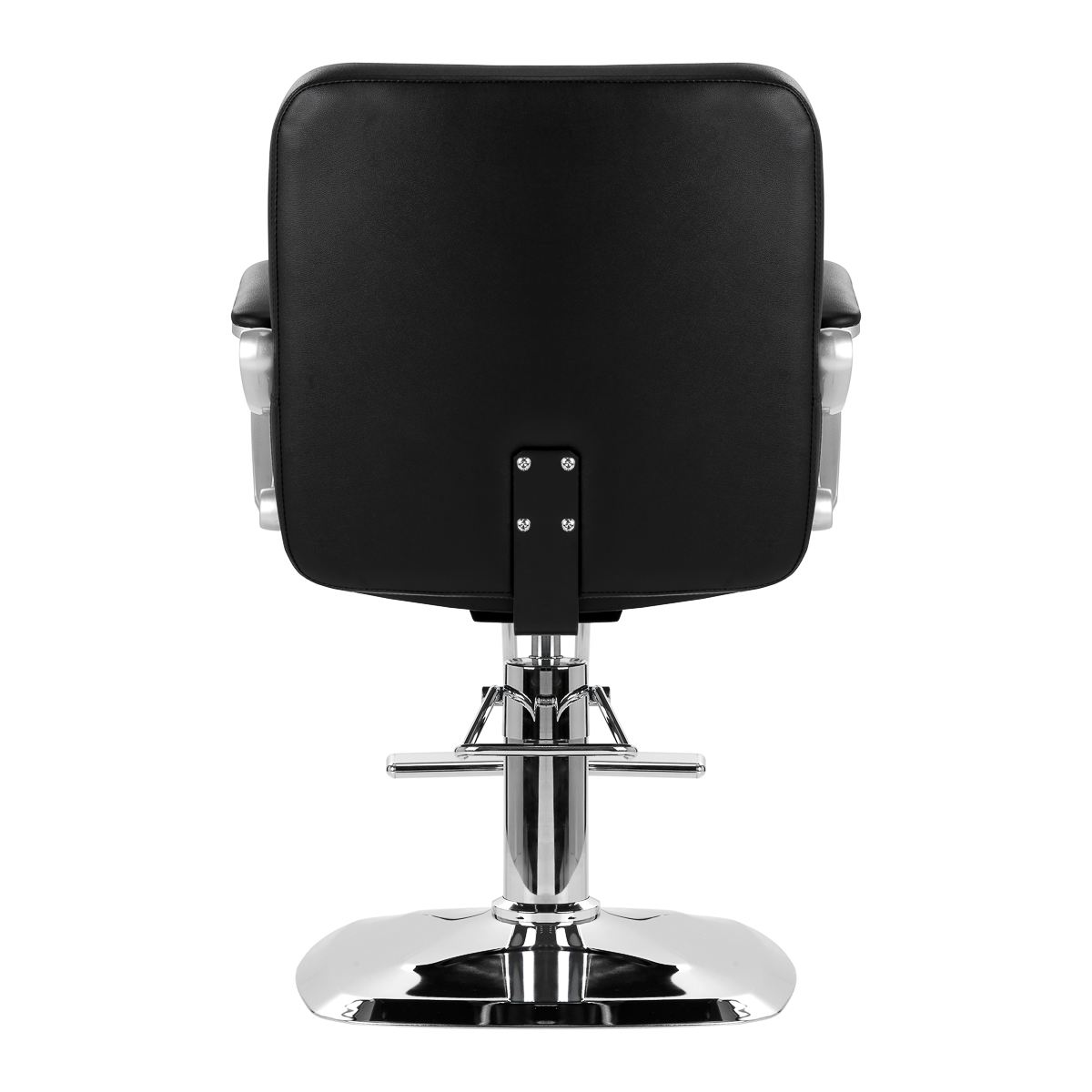 Efektywne rozwiązaniaSolidna podstawa zapewnia stabilność w trakcie użytkowania, a jej powierzchnia o lustrzanym wykończeniu jest łatwa do utrzymania w czystości. Wygodne siedzisko wypełnione zostało trwałą pianką, by zapewniać wysoki komfort użytkowania, nawet podczas wielogodzinnych zabiegów. Częściowo tapicerowane podłokietniki są ciekawym wizualnie elementem, a dzięki odpowiedniemu wyprofilowaniu pozwalają na prawidłowe ułożenie barków klienta. Dzięki temu nie chowa on głowy w ramionach ani się nie garbi – co wyraźnie ułatwia wykonywanie precyzyjnych zabiegów, w tym strzyżenia. Wyposażenie fotela w mechanizm pełnego obrotu sprawia, że praca fryzjera staje się bardziej efektywna oraz wygodna.