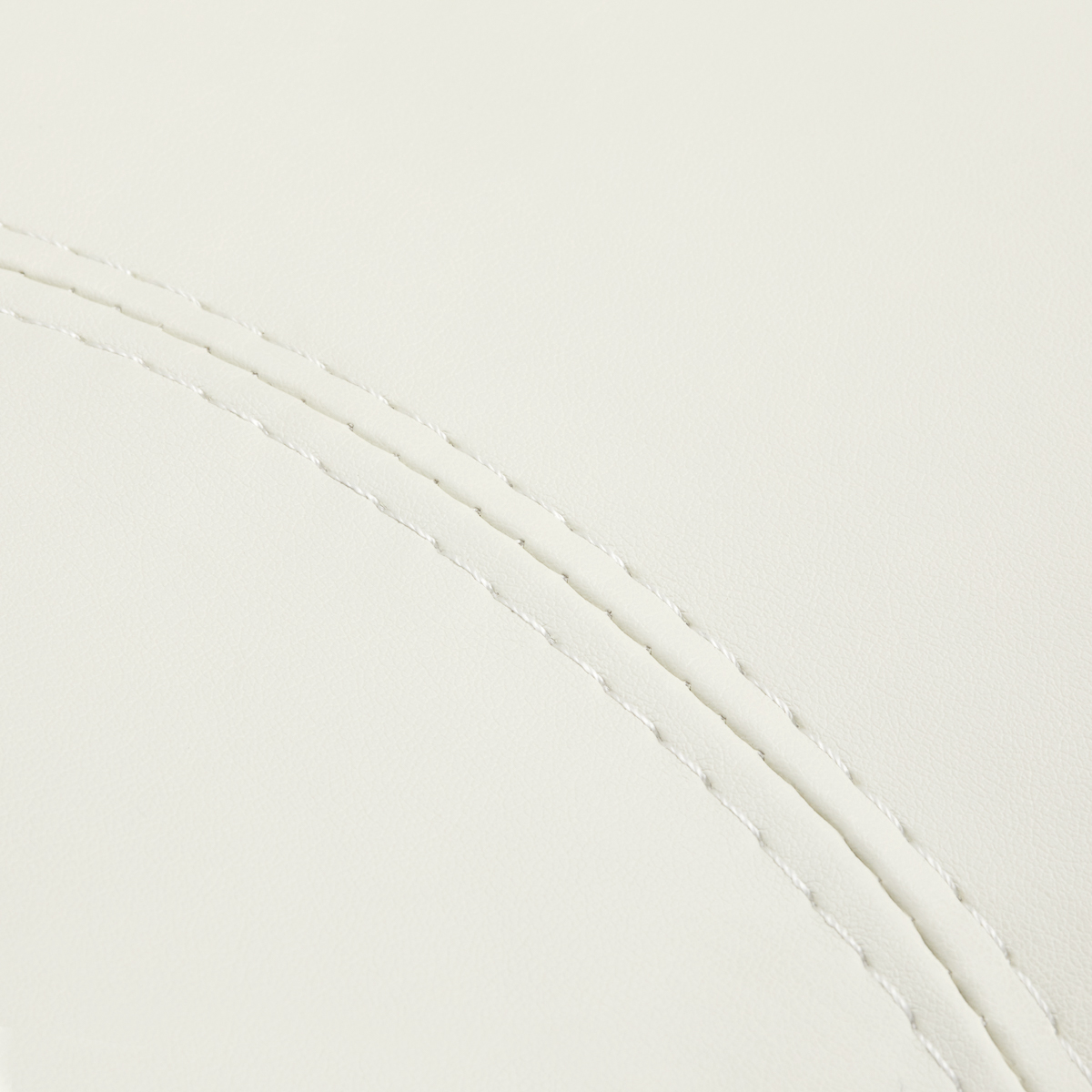 Stabilność i mobilnośćPięcioramienna, odpowiednio zaprojektowana podstawa sprawia, że taboret jest stabilny, nawet podczas intensywnej pracy. Dodatkowo wyposażony jest w kółka, co ułatwia jego przemieszczanie. Krzesło jest stabilne i wytrzymałe. Obicie wykonano z imitacji skóry w odcieniach bieli, dzięki użyciu takiego materiału jest ono odporne na wilgoć i łatwe w czyszczeniu.