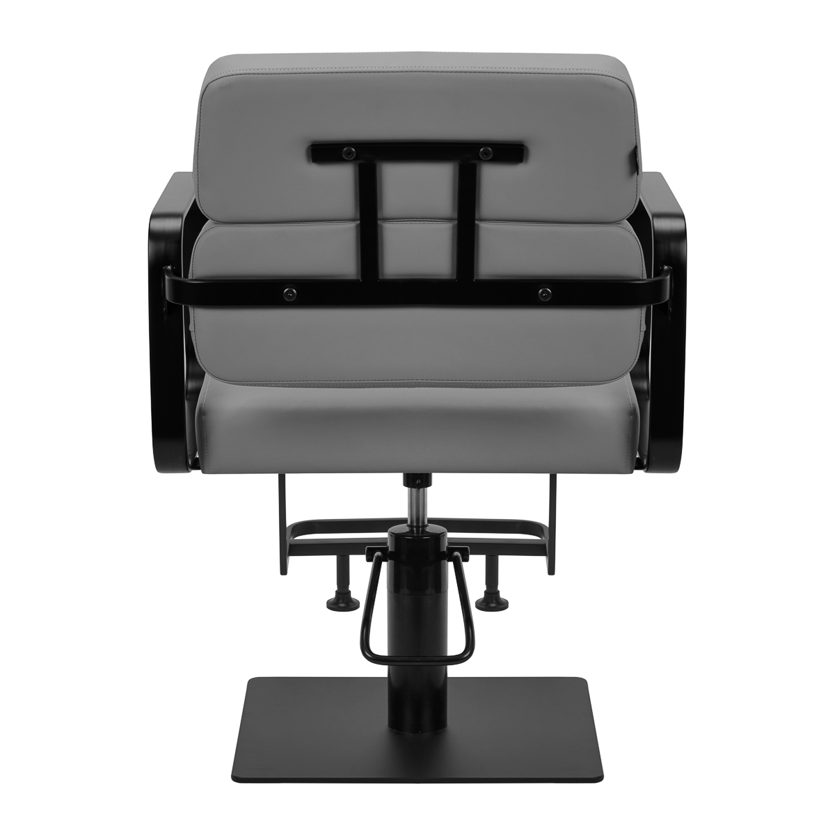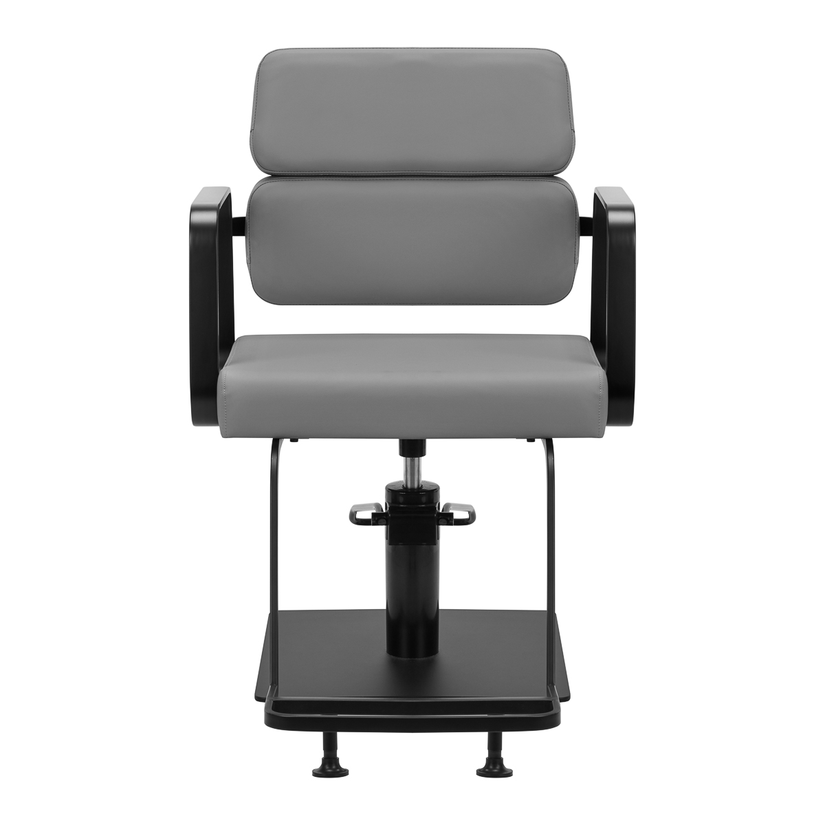 Rozwiązania dla ułatwienia pracyMechanizm pełnego obrotu, w który jest wyposażony fotel, sprawia, że praca fryzjera staje się bardziej efektywna i wygodna. Solidna, płaska podstawa w kształcie kwadratu gwarantuje stabilność w trakcie użytkowania. Matowo wykończona, gładka powierzchnia nadaje elementowi elegancki wygląd i sprawia, że ten jest łatwy do utrzymania w czystości. Wygodne siedzisko z wypełnieniem z pianki zapewnia wysoki komfort użytkowania, nawet podczas wielogodzinnych zabiegów. Geometryczne, metalowe podłokietniki pozwalają na prawidłowe ułożenie barków klienta – sprawia to, że nie chowa głowy w ramionach ani się nie garbi – co wyraźnie ułatwia wykonywanie precyzyjnych zabiegów, w tym strzyżenia. Dedykowany do tego modelu stylowy podnóżek zapewnia stabilne oparcie dla stóp użytkownika.