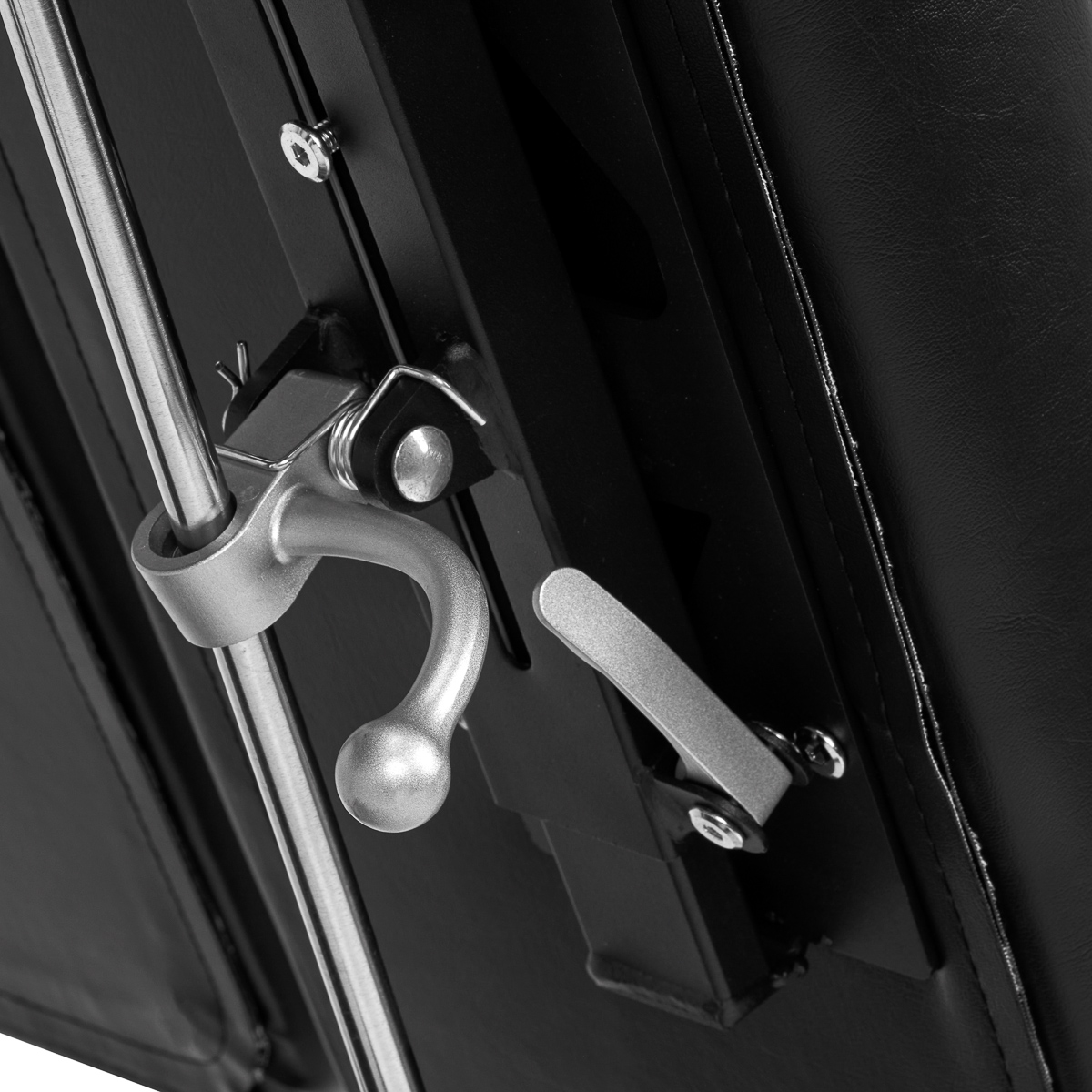 Praktyczny regulowany podnóżekDzielony podnóżek ułatwia komfortowe przeprowadzenie usług, pozwalając na niezależne układanie pozycji nóg. Kąty, pod jakimi znajdują się jego części, reguluje się i blokuje manualnie, przy użyciu specjalnych dźwigni. Wysunięcie podnóżka również można dostosowywać, co zapewni lepsze podparcie wyższym użytkownikom.