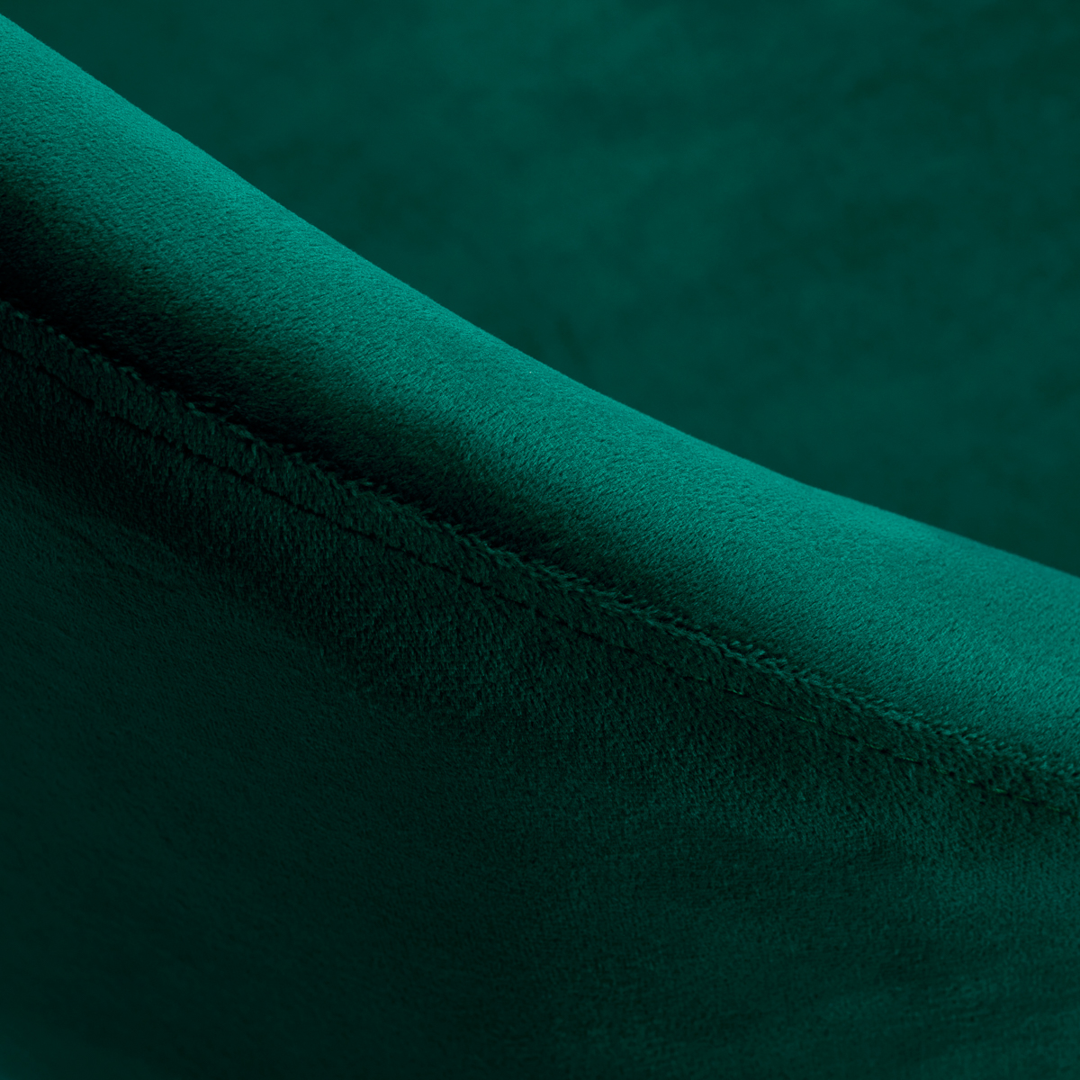 Minimalistyczny design dla komfortu użytkowaniaProste wykończenie sprawia, że mebel wpada w oko. Przyjemne w dotyku, welwetowe obicie w odcieniach zieleni nadaje mu wyjątkowego charakteru. Podstawa w odcieniach złota dodaje elegancji, idealnie komponując się z welwetem, a funkcjonalne koła zapewniają mobilność, ułatwiając przestawianie krzesła oraz poruszanie się po salonie w trakcie pracy. Estetyka wykonania, komfort użytkowania oraz ergonomicznie wyprofilowane oparcie sprawiają, że krzesło spełni wymagania nawet najbardziej wymagających użytkowników.