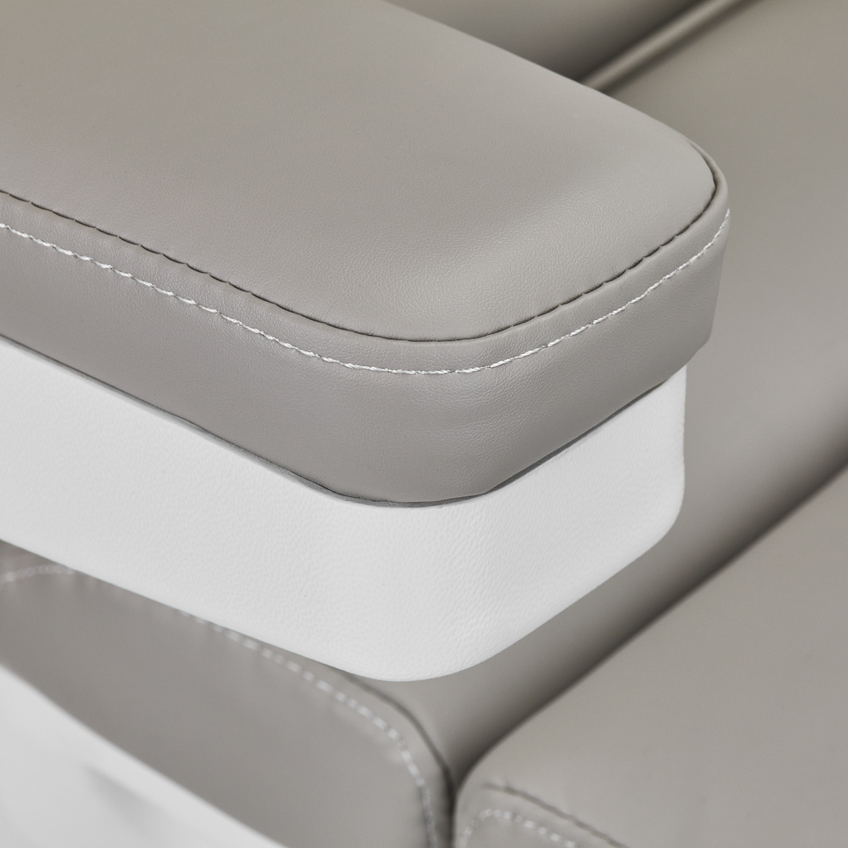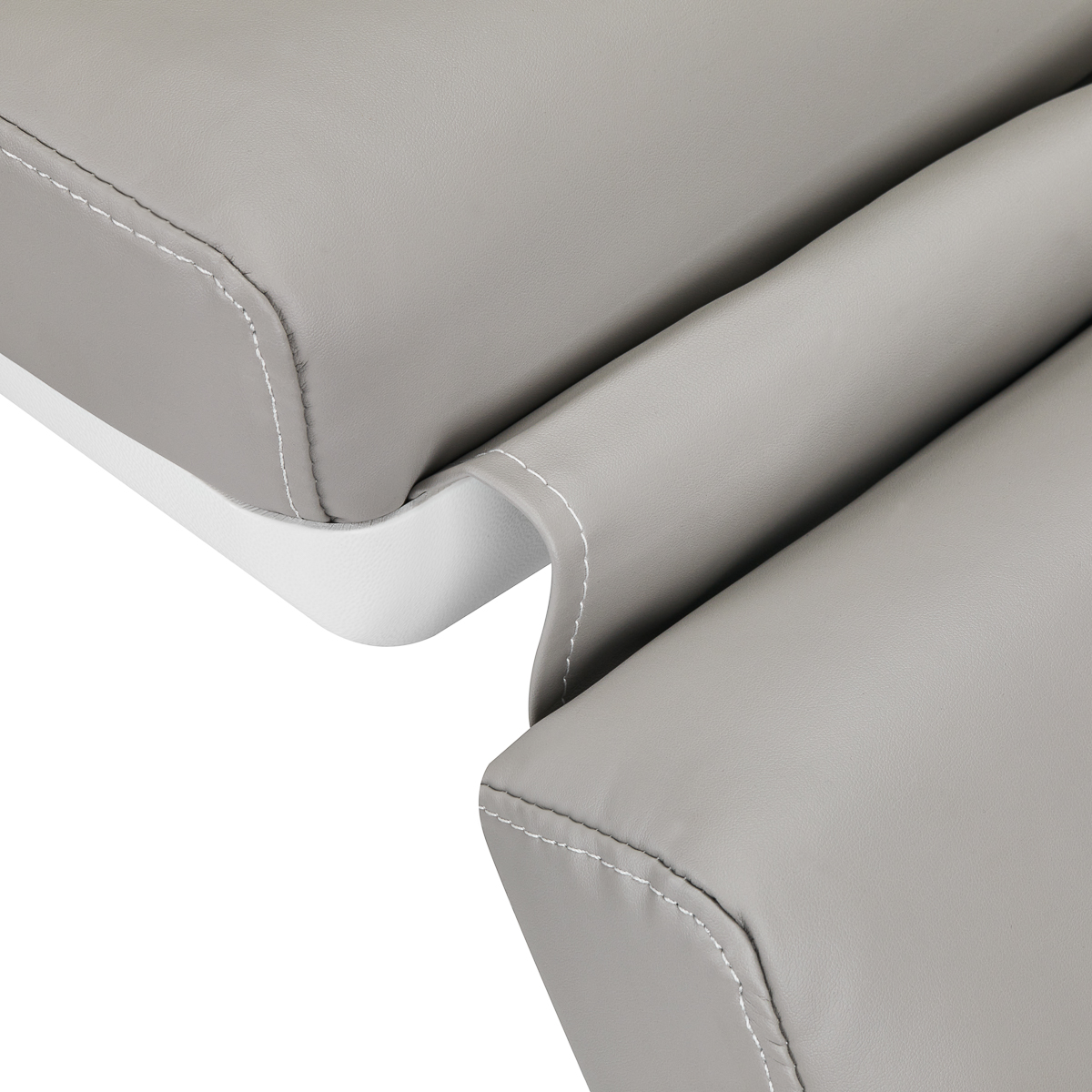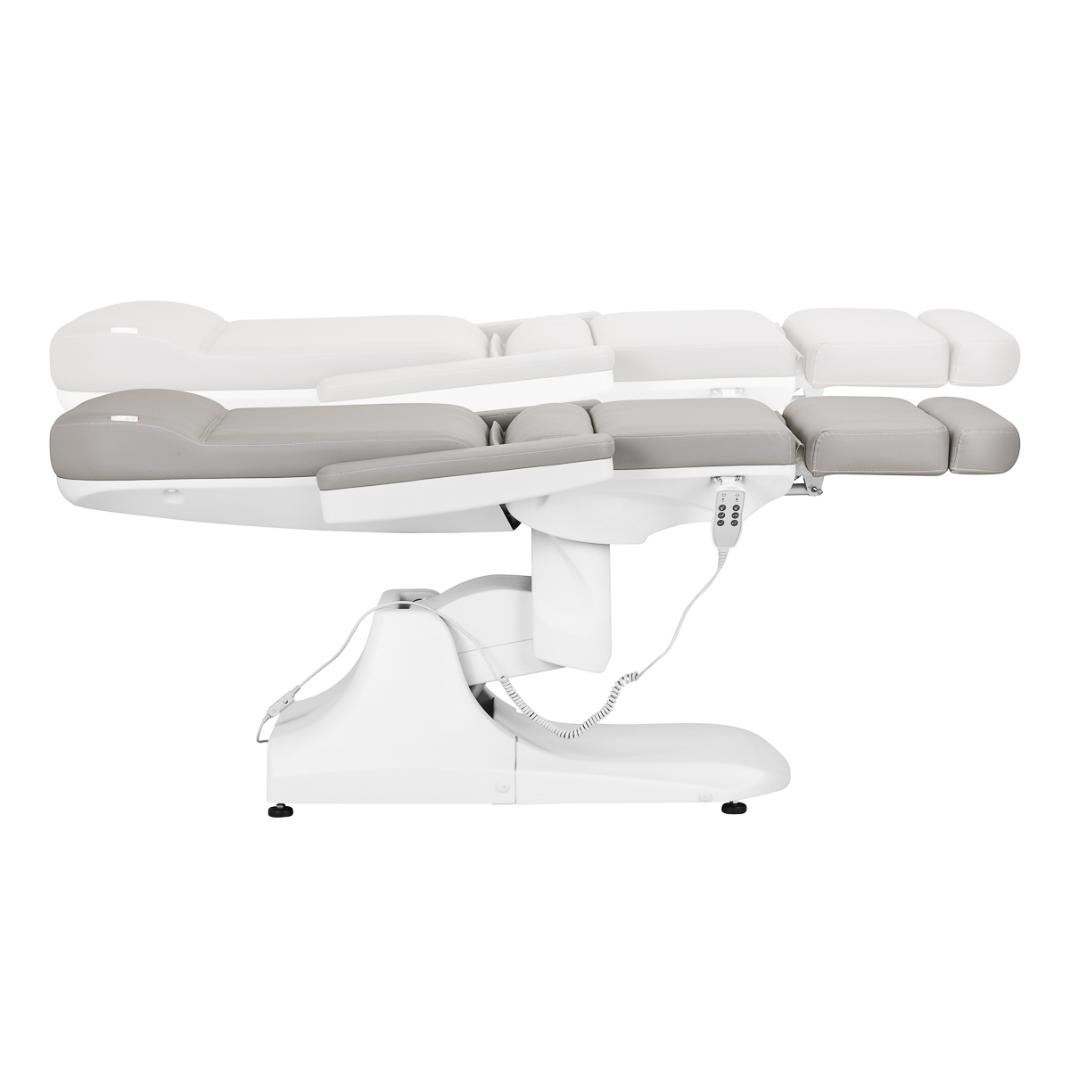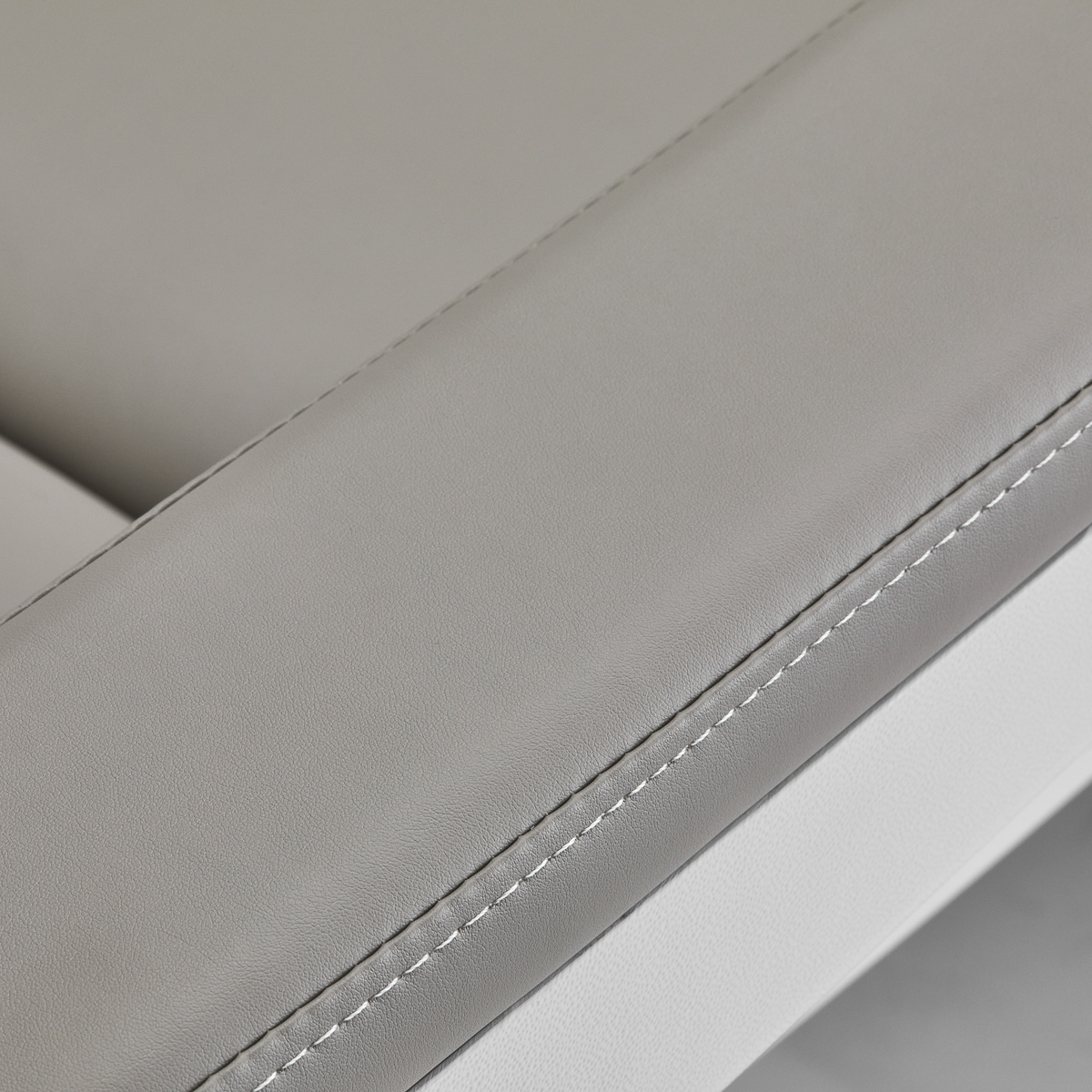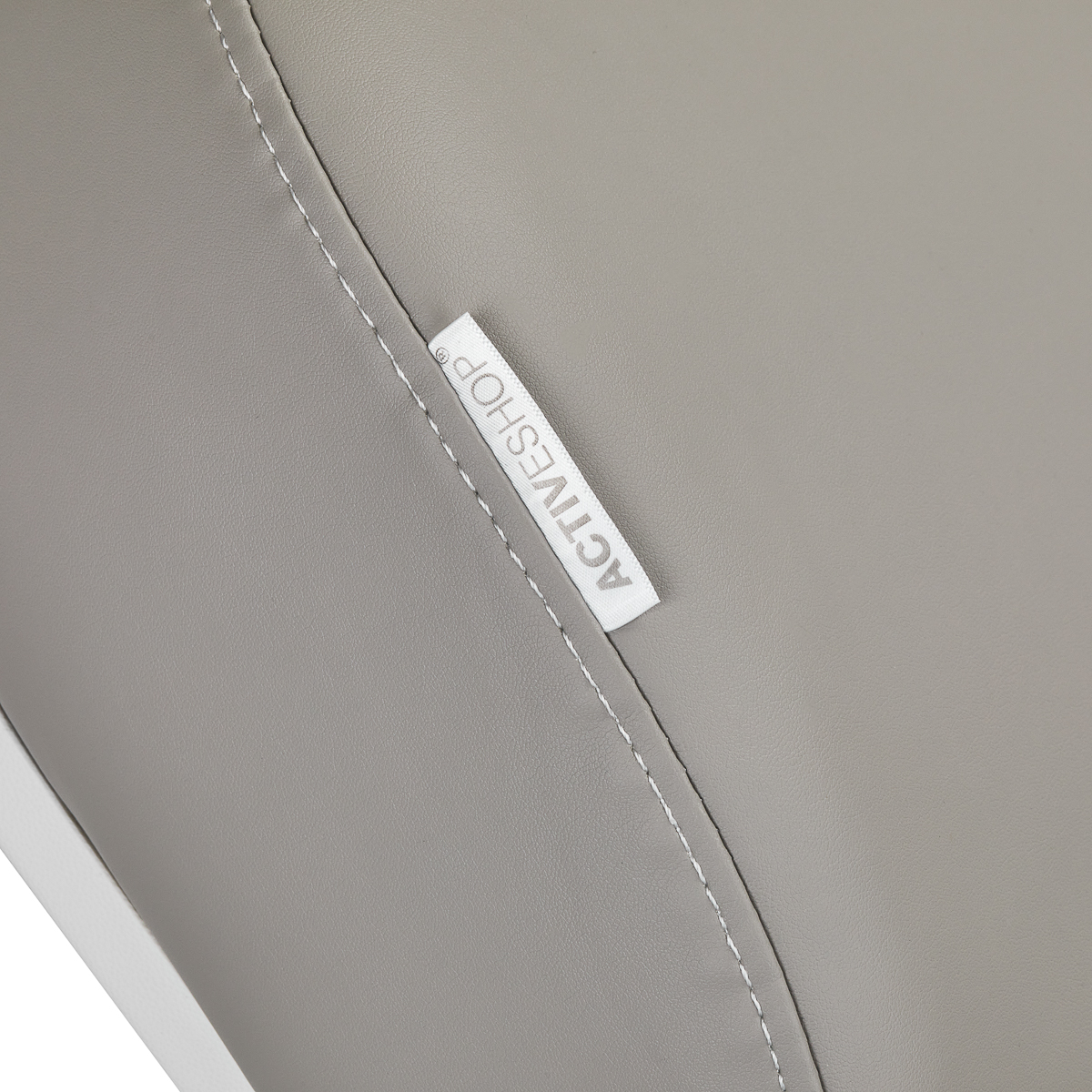 Minimalistyczny model fotela kosmetycznegoFotel wypełniony jest pianką o odpowiedniej twardości oraz pokryty przyjemną w dotyku imitacją skóry w odcieniach szarości. Dzięki użyciu materiału, który jest łatwy do utrzymania w czystości oraz odporny na wybrane środki dezynfekcji, sprzęt jest komfortowy w użytkowaniu, wytrzymały na wilgoć oraz nieskomplikowany w czyszczeniu. Solidna podstawa wykonana z trwałego materiału w odcieniach bieli zapewnia stabilność w trakcie zabiegów. Odpowiednio wyprofilowane obszycia nadają fotelowi stylowy wygląd i sprawiają, że siedzisko jest ergonomiczne.