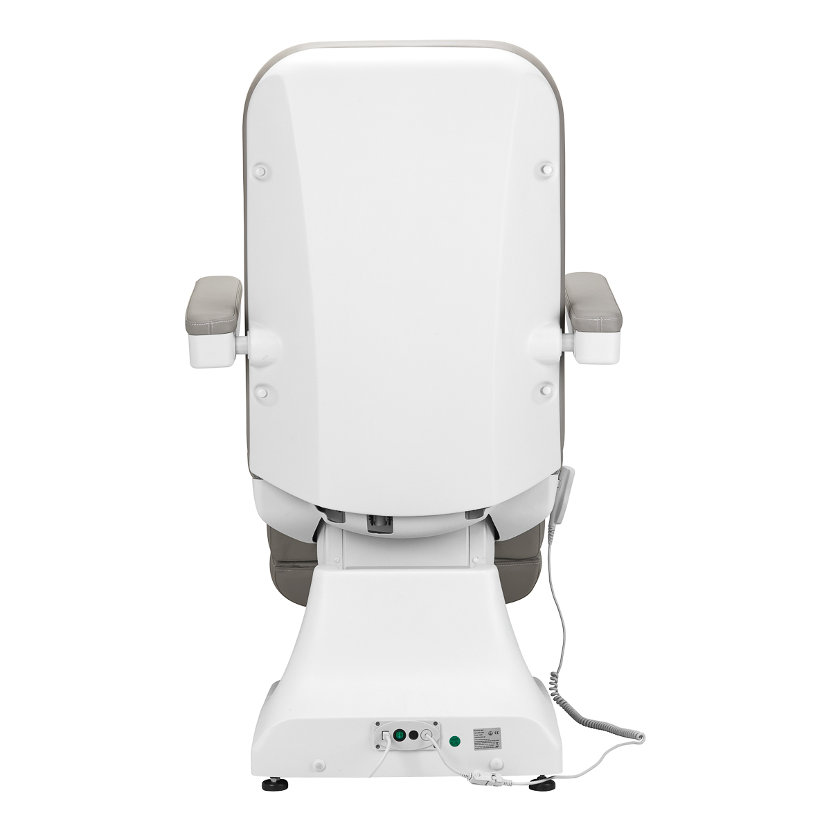 Komfortowe siedzisko i wygodne podłokietnikiSzerokie siedzisko zapewnia wygodę w trakcie długich zabiegów. Podłokietniki są ruchome, można je ustawić w pozycji pionowej lub przełożyć o 180º, dzięki czemu ułatwiają sprawne zajęcie miejsca na fotelu i zapewniają komfortowy dostęp osobie wykonującej zabieg. W razie potrzeby możliwy jest ich łatwy i szybki demontaż.