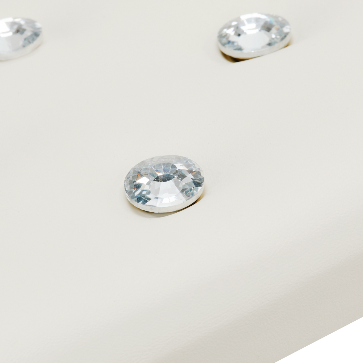Stylowe i funkcjonalne akcesoriumOdpowiednia wysokość podpórki zapewnia wygodną pozycję zarówno dla klienta, jak i dla stylistki. Poprawna postawa stylistki minimalizuje obciążenie kręgosłupa, skutecznie redukując ból pleców, a klientce zapewnia to większy komfort i relaks. Silikonowe elementy na nóżkach chronią blat przed zarysowaniami i zapobiegają przesuwaniu się na stole, gwarantują stabilność. Stelaż z tworzywa sztucznego i łatwa w czyszczeniu skóra syntetyczna zapewniają długą trwałość produktu, a ozdobne kryształki nadają mu wyjątkowy wygląd.