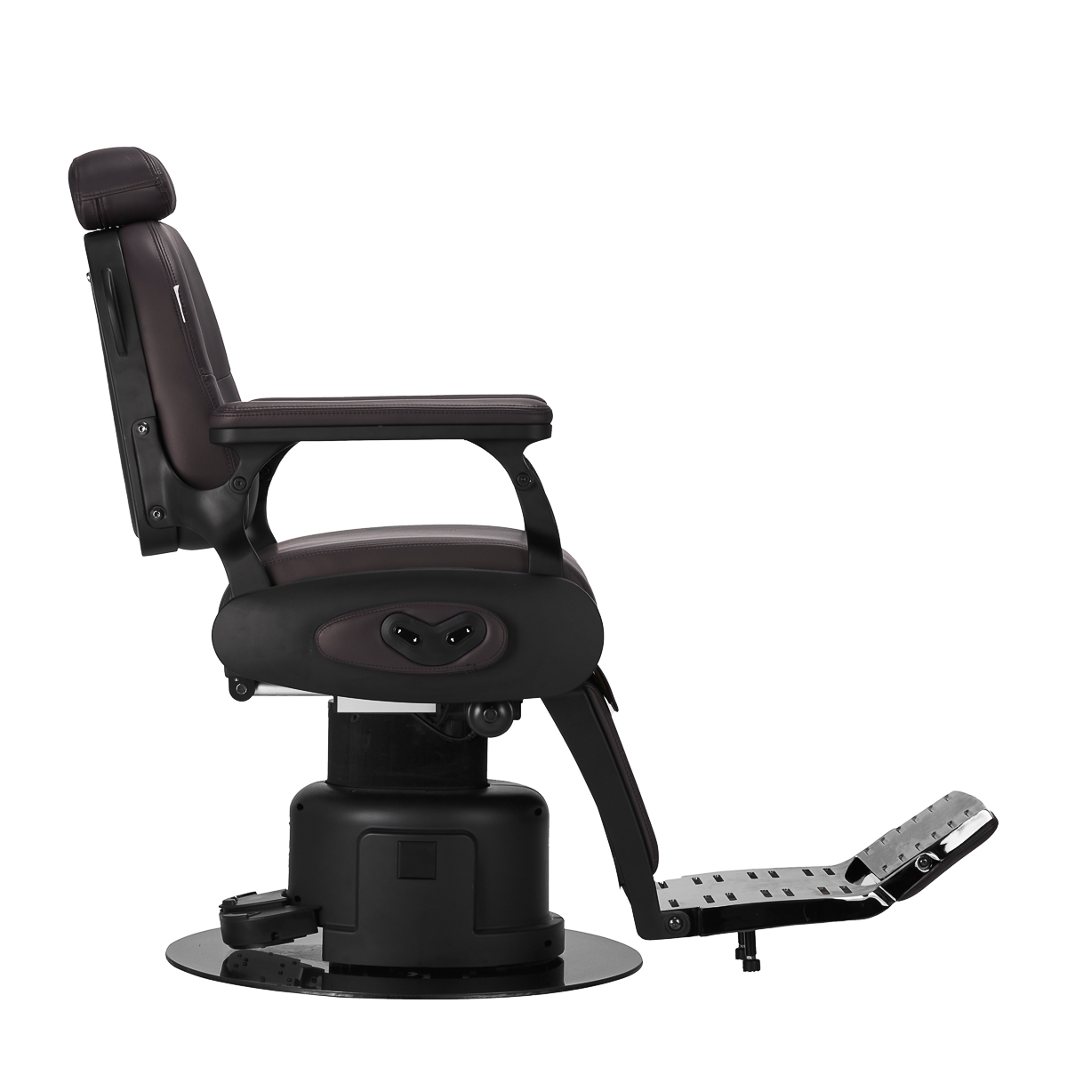 Elektryczna regulacja dla pełni komfortuElektryczny system sterowania gwarantuje szerokie możliwości regulacji. Umożliwia precyzyjne dostosowanie wysokości siedziska w zakresie 58-72 cm oraz niemal pełen obrót, co zapewnia barberom znaczną swobodę ruchu, nawet w mniejszych przestrzeniach. Sterowanie odbywa się zarówno za pomocą przycisków umieszczonych z boku fotela, jak i za pomocą sterowania nożnego, co daje dodatkową elastyczność podczas pracy. Podnoszenie oparcia i podnóżka jest również sterowane elektrycznie, co pozwala na szybkie i płynne dostosowanie pozycji klienta do wykonywanego zabiegu.