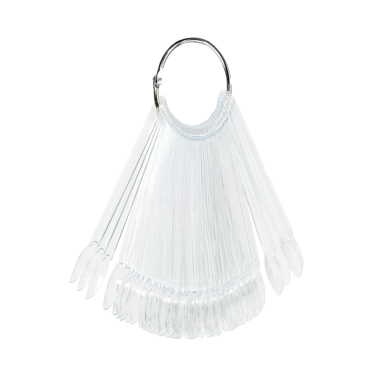 Estetyczna prezentacja kolorów i zdobieńTransparentny wzornik pozwala na estetyczną prezentację wszelkich kolorów lakierów klasycznych oraz hybrydowych, pyłków czy żeli. Składa się z 50 pojedynczych tipsów o owalnym kształcie i w rozmiarze odpowiadającym prawdziwym paznokciom. Spięty jest praktycznym, rozpinanym kołem, które ułatwia przechowywanie całości. Każdy z tipsów wykonano z trwałego tworzywa sztucznego.