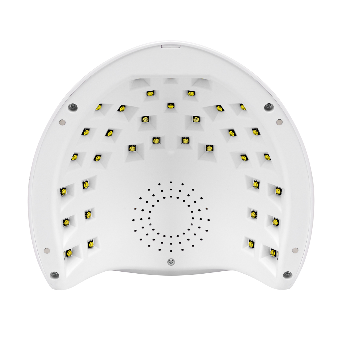 36 precyzyjnie rozmieszczonych diod LED zapewnia idealne utwardzenie żeli i lakierów hybrydowych, eliminując ryzyko powstania tzw. martwej strefy. Zamknięta konstrukcja, tzw. budka, umożliwia dokładniejsze i szybsze utrwalanie stylizacji paznokci. Dzięki technologii Dual LED diody emitują światło o dwóch długościach fali, co zmniejsza zmęczenie oczu i poszerza zakres działania urządzenia. Lustrzane dno równomiernie odbija światło, co przyspiesza i optymalizuje proces utwardzania na całej powierzchni paznokcia. Te rozwiązania ułatwiają prawidłowe utwardzenie nawet najbardziej wymagających produktów, pozwalając na dotarcie nawet do trudniej dostępnych miejsc na płytce paznokcia.
