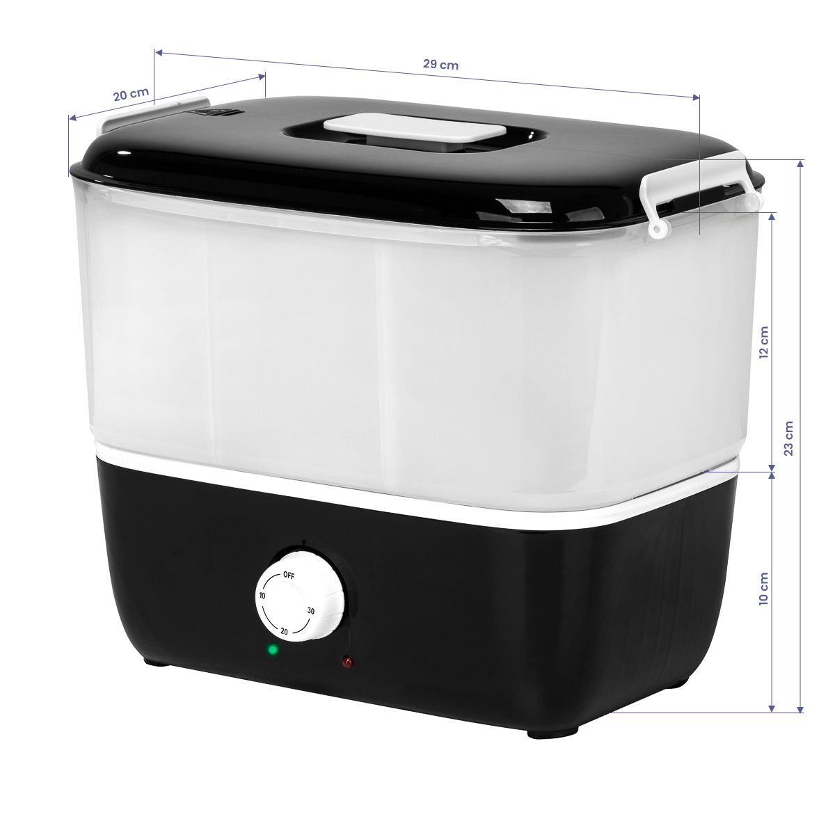 Funkcje dostosowane do potrzebModel wyróżnia się szybkim nagrzewaniem, po chwili osiągając swoją maksymalną temperaturę, co sprawia, że jest idealnym wyborem dla profesjonalistów, przyspieszając pracę. Timer pozwala na ustawienie czasu nagrzewania na 10, 20 lub 30 minut, a po jego upływie urządzenie automatycznie się wyłącza, zapewniając bezpieczeństwo. Podgrzewacz jest podzielony na trzy przestrzenie, co pozwala na efektywne wykorzystanie miejsca i pomieszczenie wielu ręczników. Lampki kontrolne LED oraz oznaczenia minimalnego i maksymalnego poziomu napełnienia zapewniają wygodę i bezpieczeństwo użytkowania.