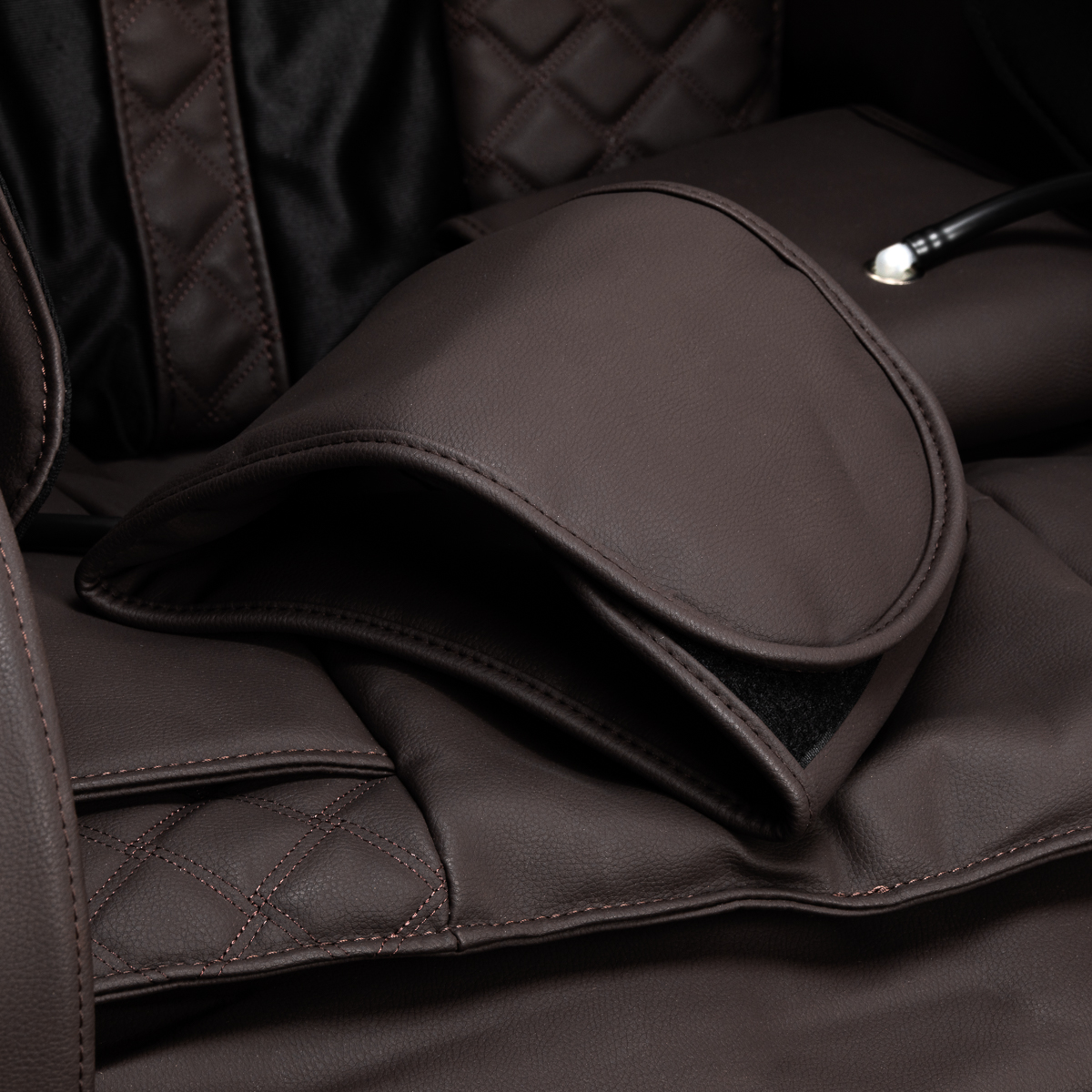 Opcjonalne sterowanie na podłokietnikuFotel został wyposażony w przyciski na lewym podłokietniku, które umożliwiają wygodne sterowanie ustawieniami. Wbudowany podręczny pilot pozwala w dowolnym momencie zabiegu regulować niektóre parametry masażu, pozycję fotela, aktywność masażu stóp czy funkcję Zero Gravity. Dla jeszcze większej wygody fotel posiada port USB, co pozwala ładować telefon w trakcie użytkowania.