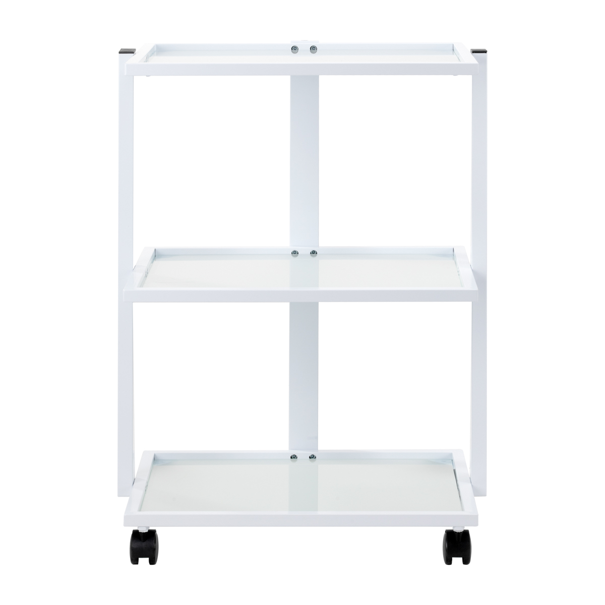 Praktyczny, kompaktowy pomocnikStolik kosmetyczny Giovanni E40 to funkcjonalny mebel, idealny do salonów kosmetycznych i gabinetów SPA. Stabilna, a jednocześnie lekka konstrukcja zapewnia komfort pracy i łatwość manewrowania. Trzy szklane półki umożliwiają wygodną organizację kosmetyków, akcesoriów oraz sprzętu niezbędnego do zabiegów. Minimalistyczne wykończenie podkreśla profesjonalny charakter stolika.