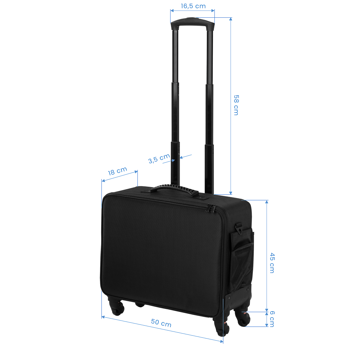 Trwałość i elegancki designWalizka została wykonana z wytrzymałego, wodoodpornego nylonu, dzięki czemu jest odporna na uszkodzenia i łatwa w czyszczeniu. Uniwersalny czarny kolor nadaje mu elegancki wygląd, a liczne kieszenie, w tym duża główna komora z regulowanymi przegródkami oraz miejscem na cztery organizery (dwa mniejsze, dwa większe), zapewniają maksymalną funkcjonalność. Przemyślana konstrukcja ułatwia organizację kosmetyków i akcesoriów, pomagając utrzymać porządek. Nowoczesny design, mobilność i praktyczność sprawiają, że walizka jest niezastąpionym narzędziem dla profesjonalistów z branży beauty.