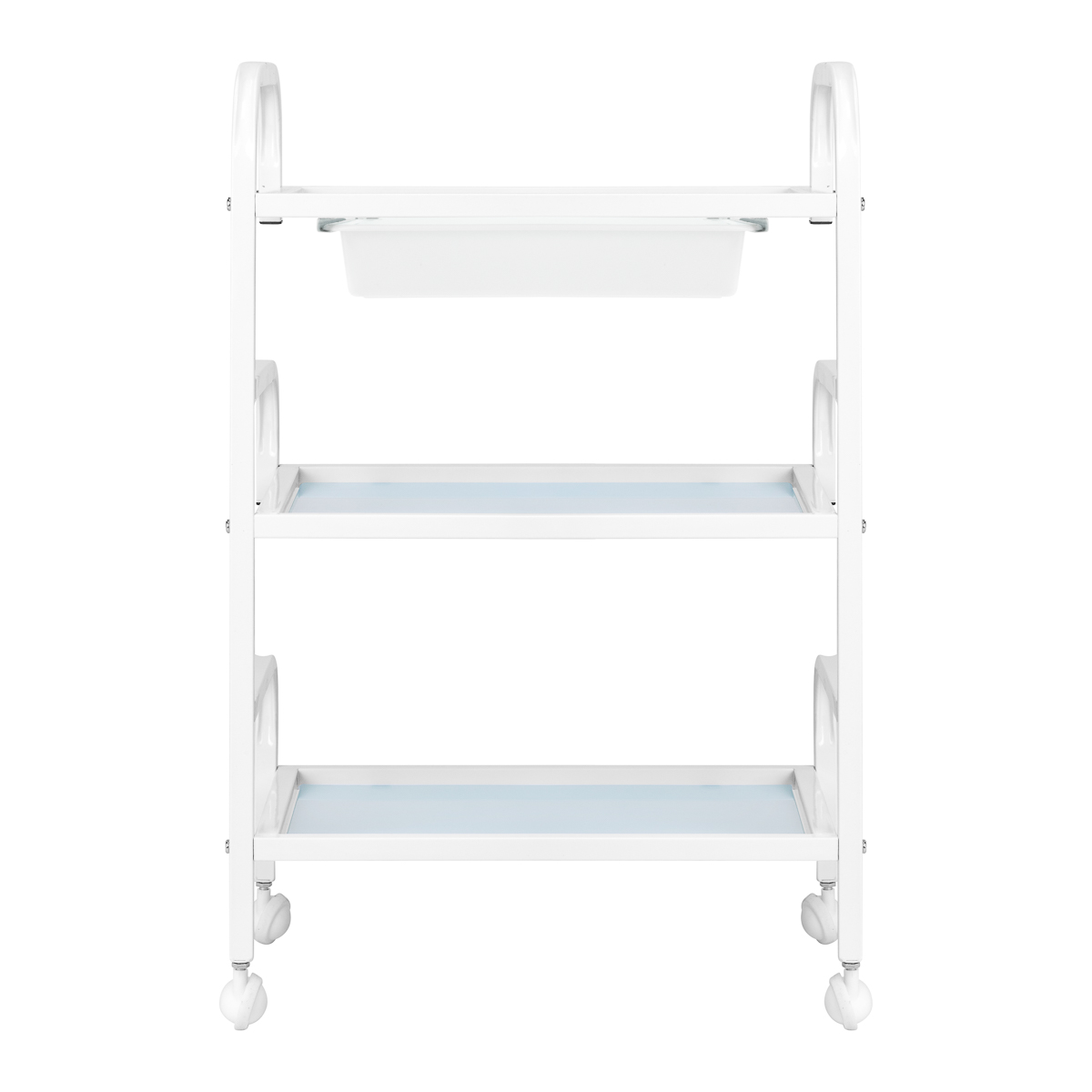 Praktyczny pomocnik kosmetycznyPomocnik kosmetyczny Basic 121 to funkcjonalny mebel, który doskonale sprawdzi się w każdym salonie kosmetycznym czy gabinecie SPA. Lekka konstrukcja ułatwia codzienną pracę, a trzy szklane półki zapewniają wygodne przechowywanie kosmetyków, akcesoriów i sprzętu. Dodatkowa kuweta pod górną półką umożliwia szybki dostęp do najczęściej używanych narzędzi. Minimalistyczny design dodaje wnętrzom profesjonalnego charakteru.