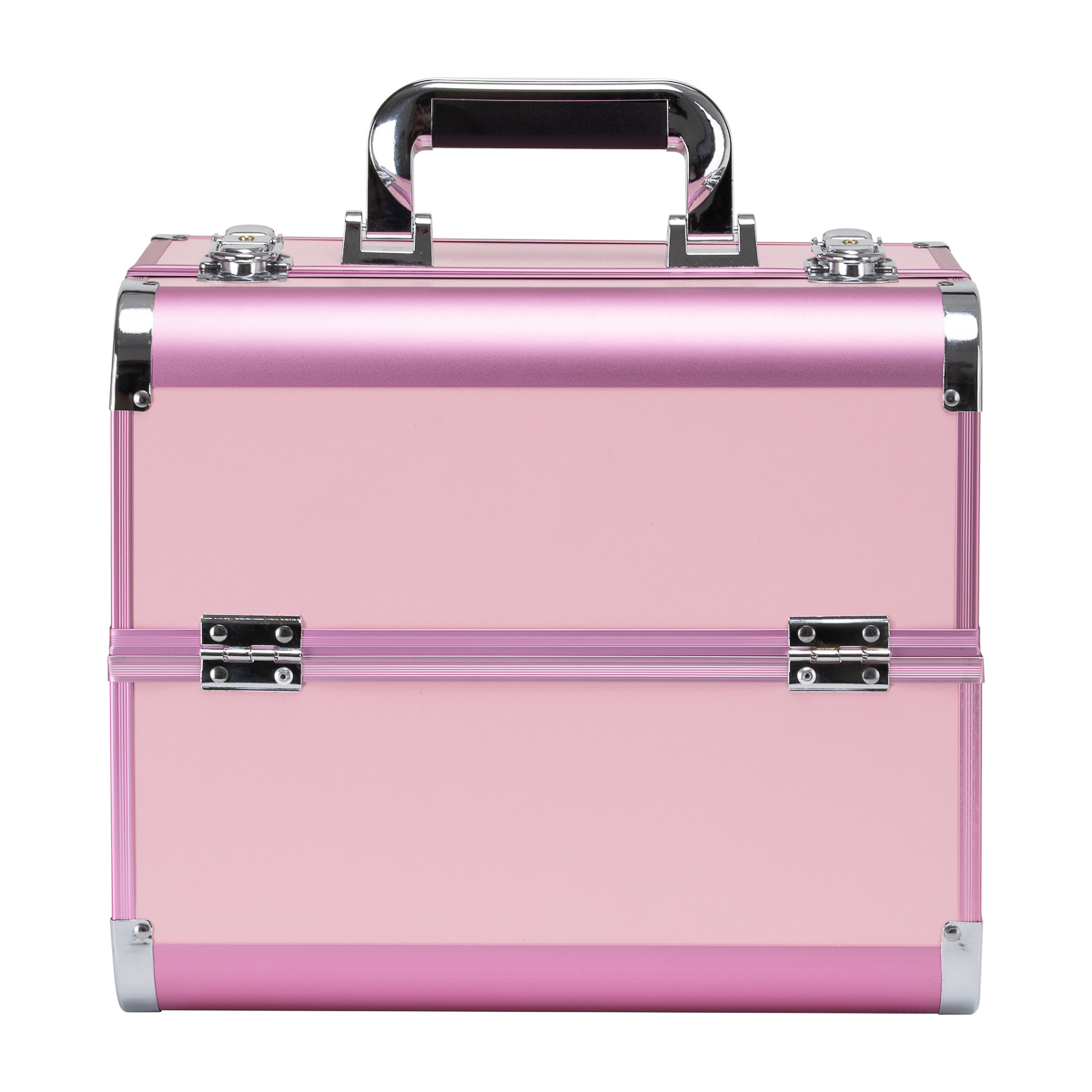 Prosty design i wysoka funkcjonalnośćNowoczesny design z gładkim wykończeniem ścianek w odcieniach różu z metalicznymi akcentami dodaje elegancji. Rączka ułatwia transport, co jest szczególnie ważne dla mobilnych stylistów. Wykonany z wytrzymałych, odpornych na uszkodzenia materiałów zapewnia komfort użytkowania na co dzień. Solidne zamknięcie na zatrzaski z kluczykiem zapewnia ochronę zawartości, a lekka, trwała konstrukcja sprawia, że kuferek jest łatwy do przenoszenia.