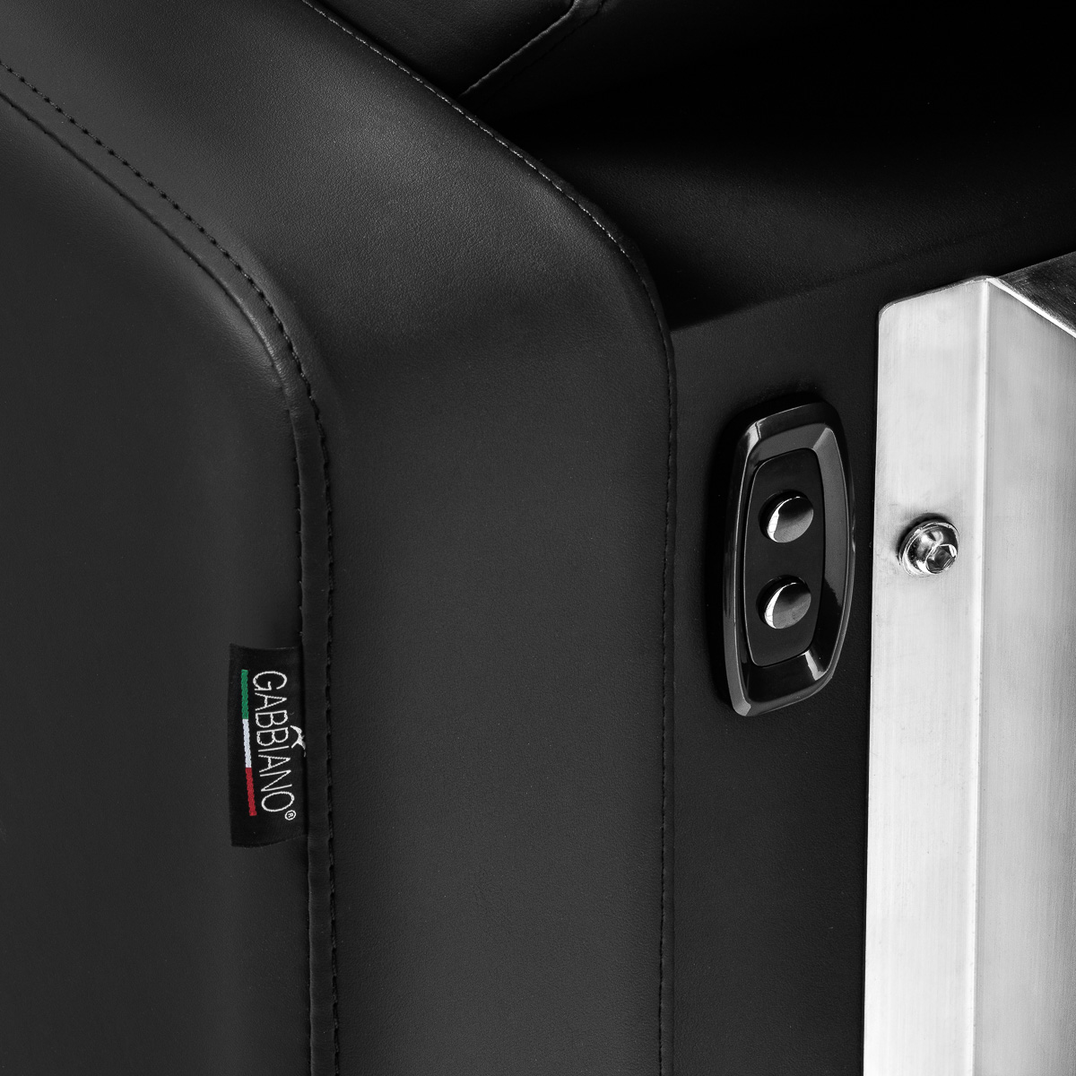 Nowoczesny design w parze z funkcjonalnościąMyjnia fryzjerska Gabbiano Sylvia została stworzona z myślą o maksymalnym komforcie zarówno klienta, jak i stylisty – idealnie sprawdza się podczas zabiegów pielęgnacyjnych, koloryzacji czy dłuższych procedur. Prosta, geometryczna forma i wyraźnie zarysowane linie siedziska oraz podłokietników nadają jej nowoczesny, elegancki charakter. Oparcie ustawione pod optymalnym kątem zapewnia odpowiednie wsparcie dla kręgosłupa, a stylowe przeszycia dodają całości estetyki. Wyprofilowane siedzisko wypełnione jest trwałą pianką, natomiast tapicerowane podłokietniki umożliwiają prawidłowe ułożenie barków i ramion. Pokrycie z wysokiej jakości skóry syntetycznej w odcieniach czerni wyróżnia się trwałością i łatwością czyszczenia. Myjnia prezentuje się elegancko i nowocześnie, podkreślając styl wnętrza salonu.