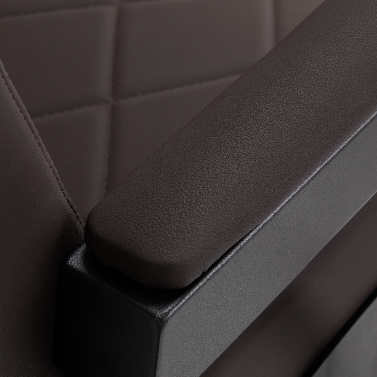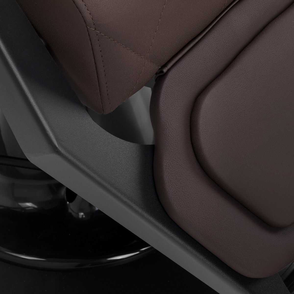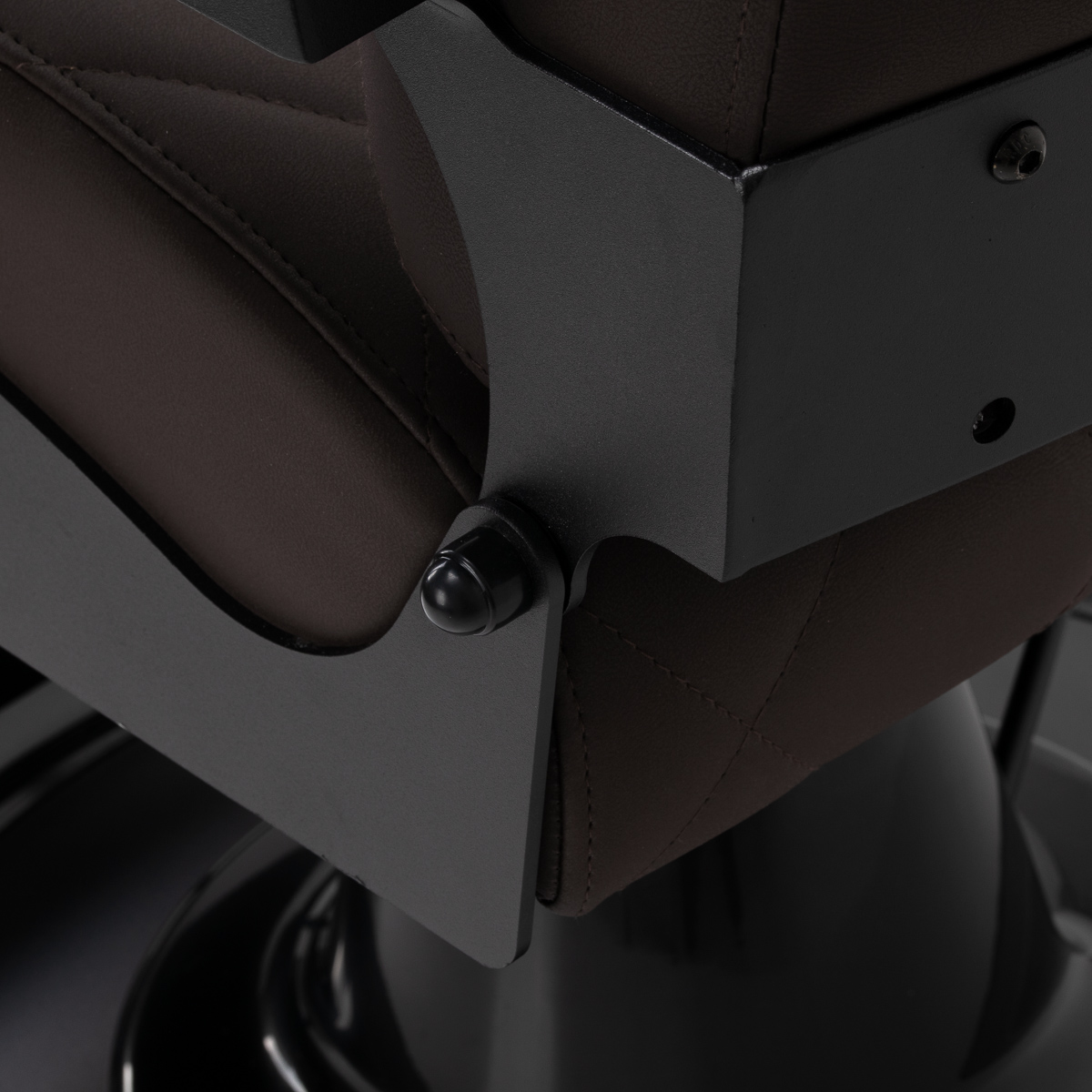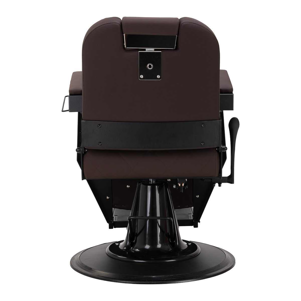 Stabilna konstrukcja zapewnia bezpieczeństwo i długą żywotność mebla. Siedzisko wypełnione pianką odporną na odkształcenia oraz obicie z miękkiej skóry syntetycznej zapewniają meblowi trwałość i wygodę. Odporne na wilgoć materiały są nie tylko wytrzymałe, ale również łatwe w czyszczeniu. Brązowa tapicerka w połączeniu z czarną ramą nadaje fotelowi nowoczesny i profesjonalny wygląd, a minimalistyczny styl pozwala mu wpasować się w wystrój każdego salonu barberskiego.