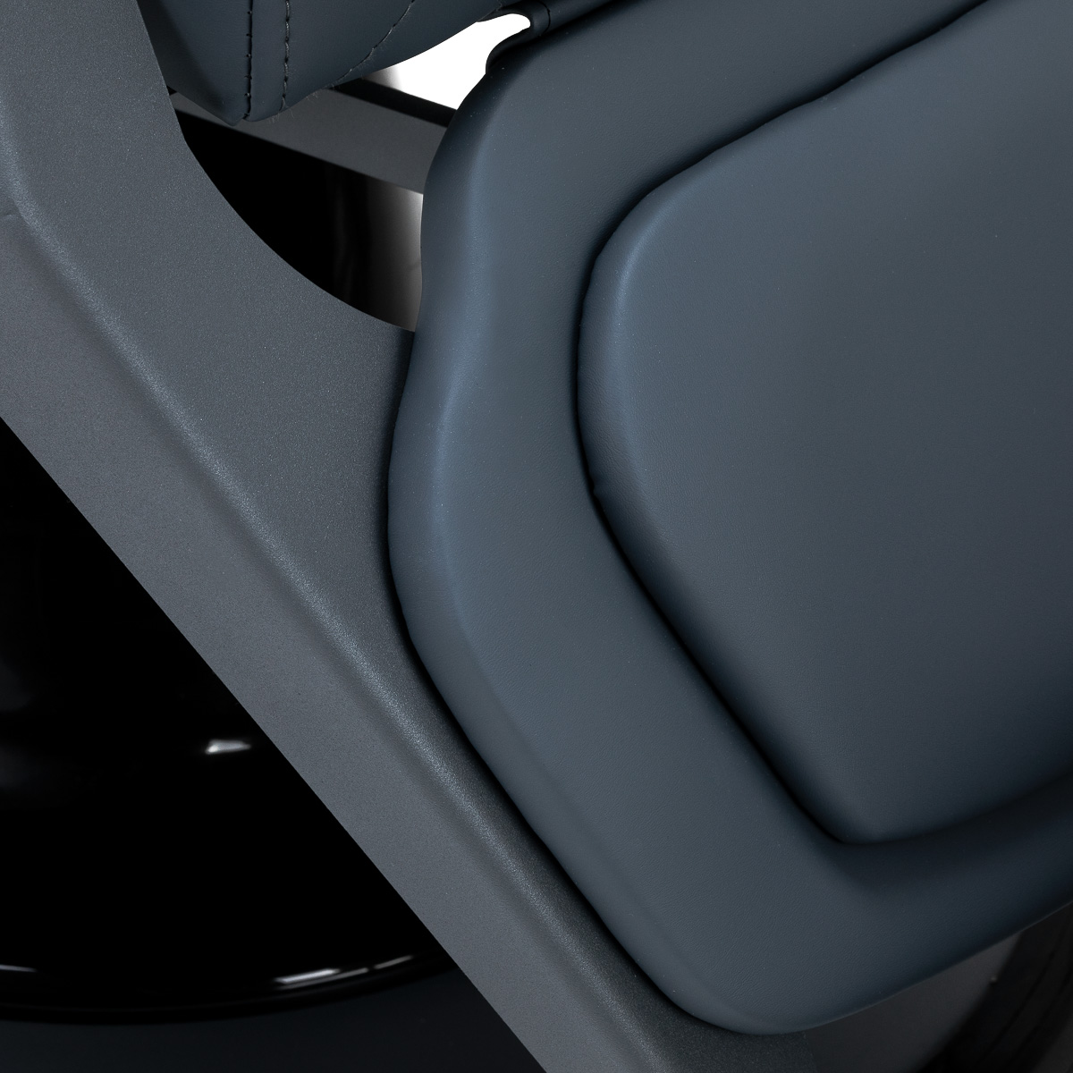 Ergonomiczna konstrukcja siedziska oraz odpowiednio wyprofilowane oparcie zapewniają klientowi wygodę nawet podczas dłuższych zabiegów. Tapicerowane podłokietniki zamontowane na optymalnej wysokości umożliwiają prawidłowe ułożenie ramion klienta, co zapobiega napięciom w okolicach karku i barków. Mechanizm pełnego obrotu zwiększa swobodę pracy i umożliwia łatwe ustawienie fotela w dowolnej pozycji.