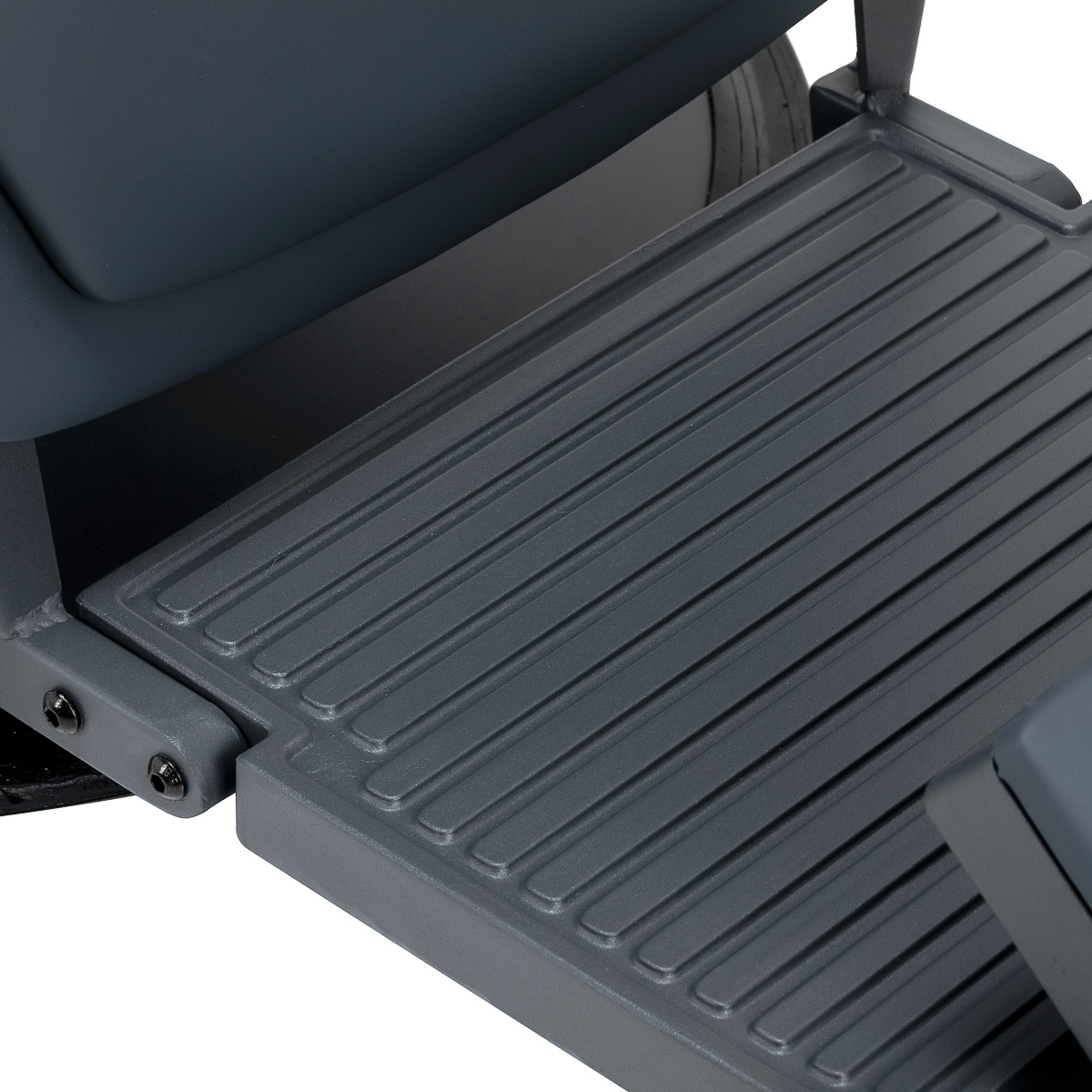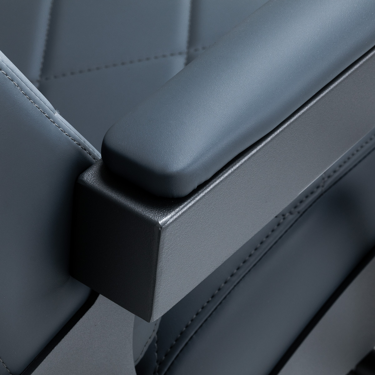 Stabilna konstrukcja zapewnia bezpieczeństwo i długą żywotność mebla. Siedzisko wypełnione pianką odporną na odkształcenia oraz obicie z miękkiej skóry syntetycznej zapewniają meblowi trwałość i wygodę. Odporne na wilgoć materiały są nie tylko wytrzymałe, ale również łatwe w czyszczeniu. Grafitowa tapicerka w połączeniu z czarną ramą nadaje fotelowi nowoczesny i profesjonalny wygląd, a minimalistyczny styl pozwala mu wpasować się w wystrój każdego salonu barberskiego.
