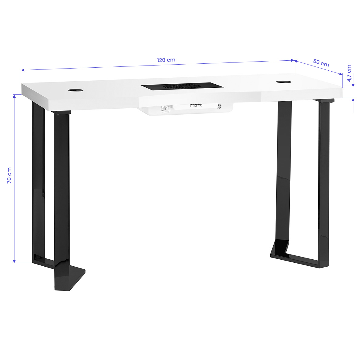 Nowoczesne biurko kosmetyczneBiurko kosmetyczne Momo 05 to wyjątkowe połączenie prostoty i stylu, zaprojektowane z myślą o wymagających użytkownikach. Minimalistyczny design ze złotymi elementami dodaje mu eleganckiego charakteru. Gładki blat na wysoki połysk gwarantuje komfort podczas wykonywania codziennych obowiązków w salonie kosmetycznym.