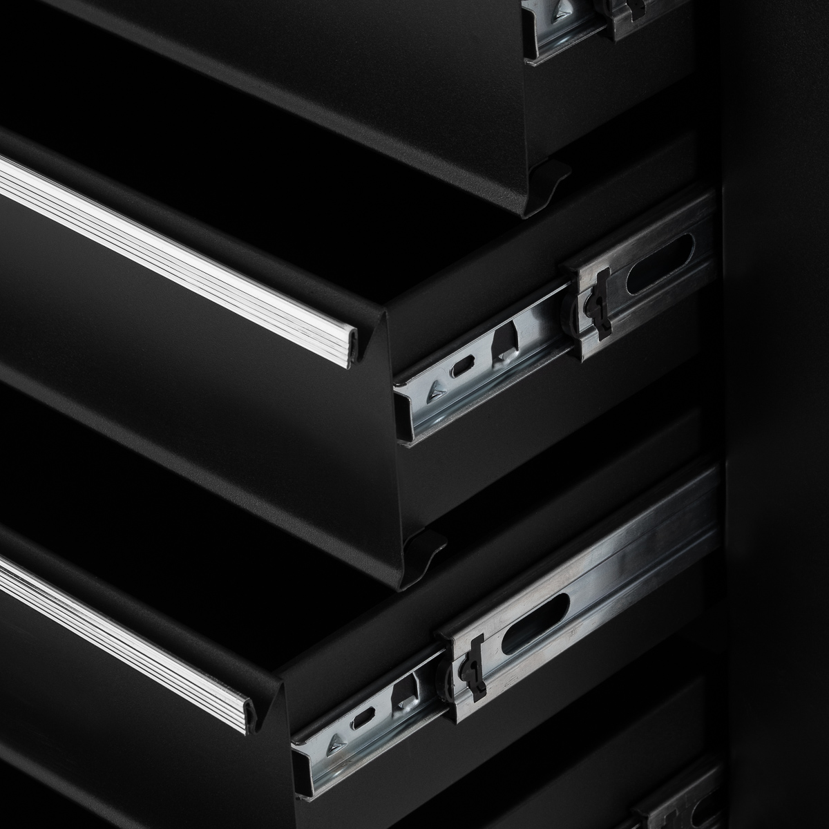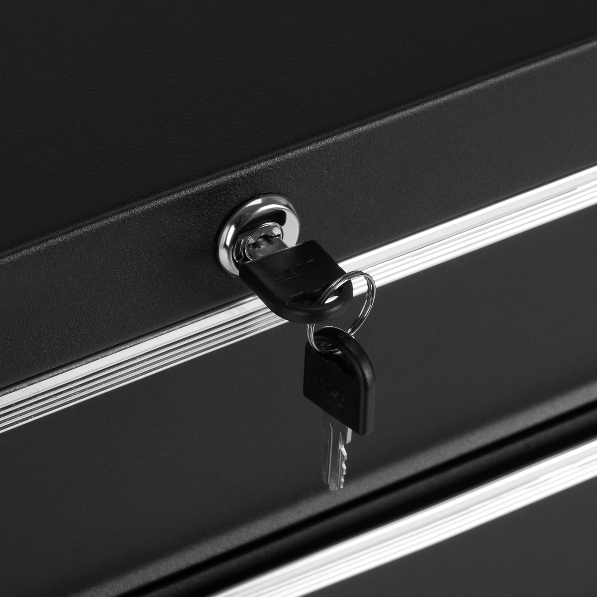 Przestronne szuflady na akcesoria i narzędziaModel wyposażony jest w pięć pojemnych szuflad, co zapewnia dużo miejsca na niezbędne narzędzia, środki higieniczne oraz jednorazowe akcesoria. Przemyślany układ sprzyja zachowaniu porządku i odpowiedniej organizacji przestrzeni roboczej. Zamek z kluczem zabezpiecza szuflady przed niekontrolowanym wysuwaniem i umożliwia przechowywanie delikatniejszych elementów wyposażenia lub dokumentacji.