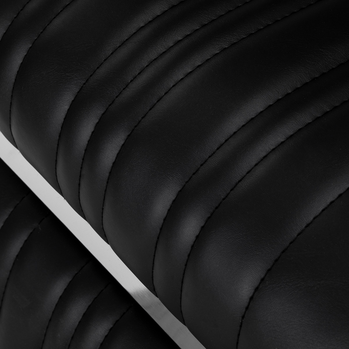 Stabilna podstawa zapewnia pewne podparcie i wysoki komfort użytkowania. Siedzisko wypełnione pianką odporną na odkształcenia oraz tapicerka z półmatowej skóry syntetycznej gwarantują trwałość i wygodę przez długi czas. Materiały wyróżniają się odpornością na wilgoć oraz łatwością utrzymania w czystości. Czarna tapicerka zestawiona z metalowymi, chromowanymi elementami oraz dekoracyjnym podnóżkiem nadaje fotelowi wyrazisty, klasyczny charakter. Pionowe przeszycia podkreślają stylistykę vintage, doskonale wpisującą się w klimat profesjonalnych salonów barberskich. Starannie dopracowane detale nadają całości reprezentacyjny wygląd, a funkcjonalna konstrukcja sprzyja komfortowej i efektywnej pracy.