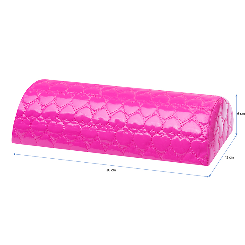 Praktyczna i profesjonalna poduszka pod dłoń obita jest materiałem skóropodobnym z pikowanymi sercami, wypełnienie poduszki jest piankowe o specjalnej twardości. Materiał skóropodobny bardzo łatwo daje się czyścić co pozwala na utrzymanie go w idealnej czystości, pył z piłowanych paznokci nie przyczepia się do materiału.