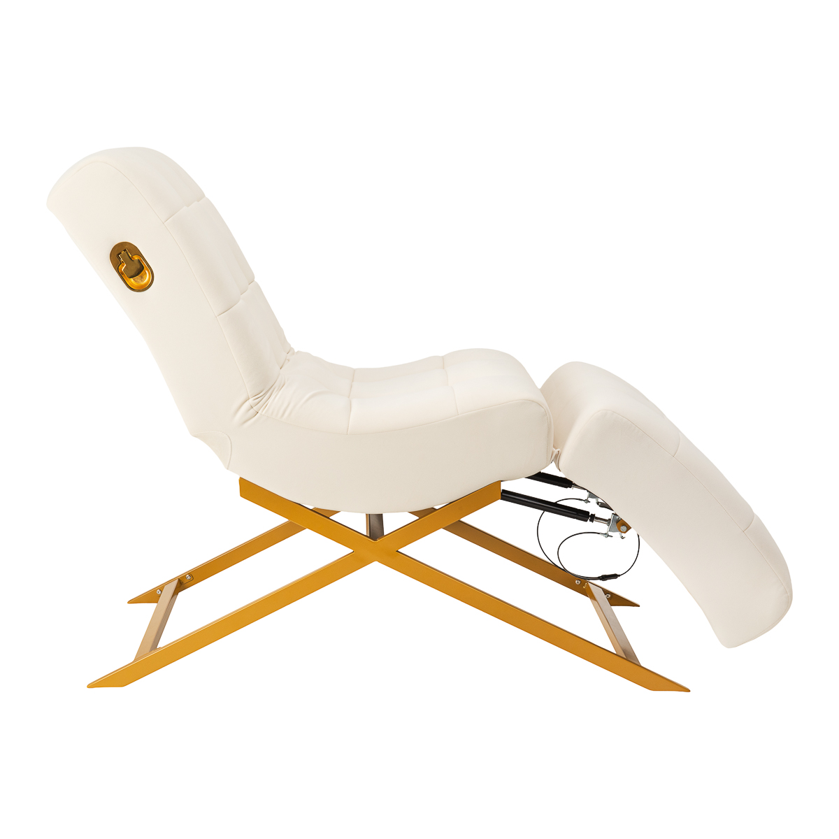 Ruchome części zagłówkowa oraz podnóżkowa umożliwiają precyzyjne dopasowanie ułożenia ciała do rodzaju wykonywanego zabiegu oraz indywidualnych potrzeb klientki. Regulacja odbywa się za pomocą dyskretnych dźwigni, które pozwalają szybko i wygodnie zmienić kąt nachylenia poszczególnych segmentów. Takie rozwiązanie zwiększa komfort podczas stylizacji rzęs i innych dłużej trwających usług, a jednocześnie ułatwia ergonomiczne ustawienie stanowiska pracy.