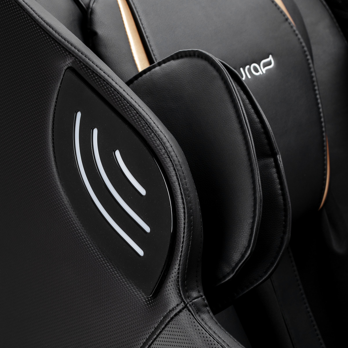 Sterowanie głosoweFotel do masażu wyposażony jest w funkcję sterowania głosowego, umożliwiającą wygodną obsługę bez użycia rąk. Za pomocą prostych komend można rozpocząć lub zakończyć masaż, wybrać tryb pracy, a także regulować działanie poduszek powietrznych oraz intensywność masażu. Rozwiązanie to zwiększa komfort użytkowania, umożliwia pełne odprężenie i pozwala całkowicie skupić się na relaksie, bez konieczności sięgania po panel sterowania.