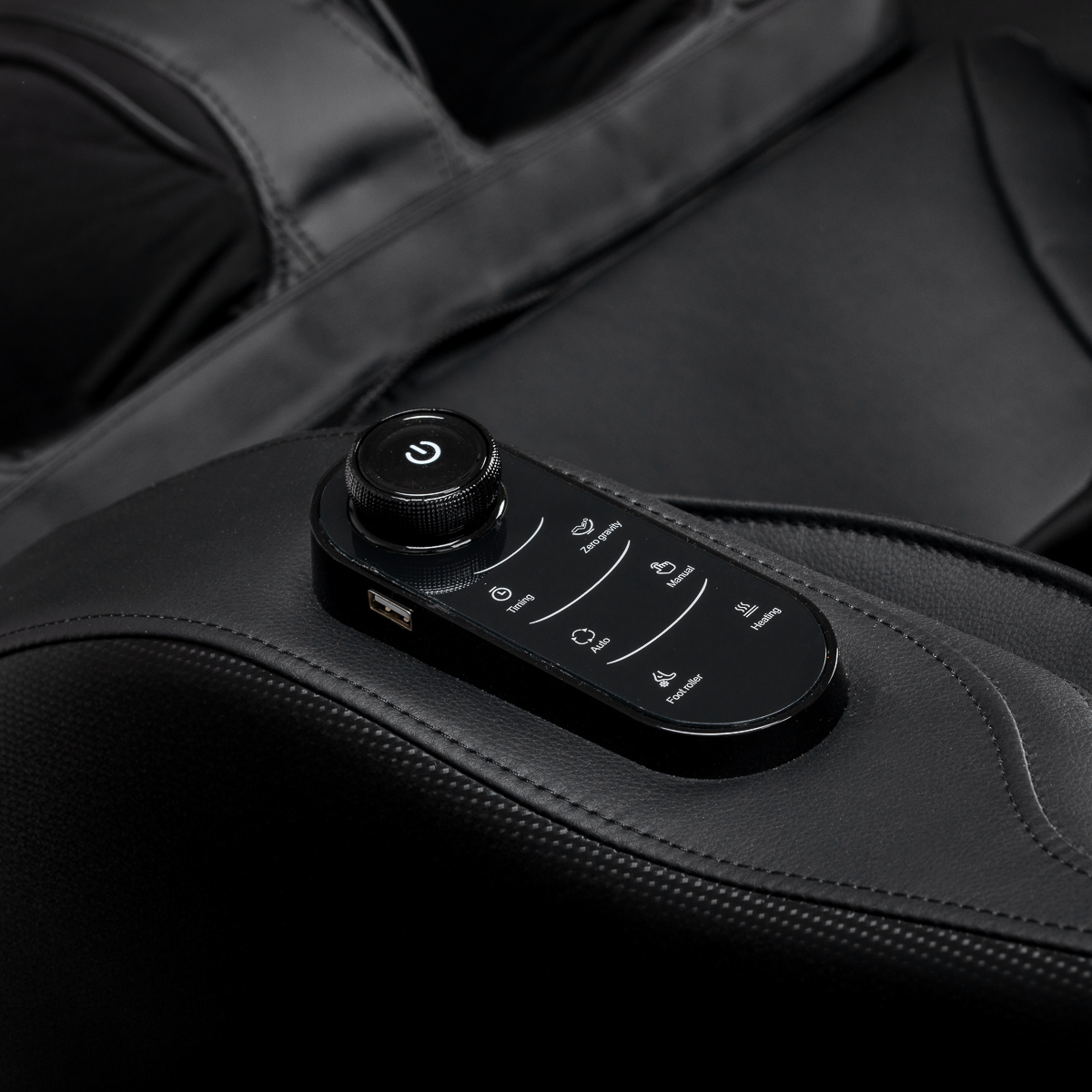 Opcjonalne sterowanie na podłokietnikuDla zwiększenia wygody fotel wyposażono w dodatkowy zestaw przycisków sterujących umieszczonych na lewym podłokietniku. Wbudowany podręczny pilot zapewnia szybki dostęp do najważniejszych funkcji bez konieczności sięgania po główny panel. Dzięki temu użytkownik może w prosty sposób zmieniać rodzaj masażu, uruchamiać masaż stóp, aktywować funkcję podgrzewania oraz funkcję Zero Gravity, co pozwala w pełni kontrolować komfort i intensywność relaksu w każdej chwili.