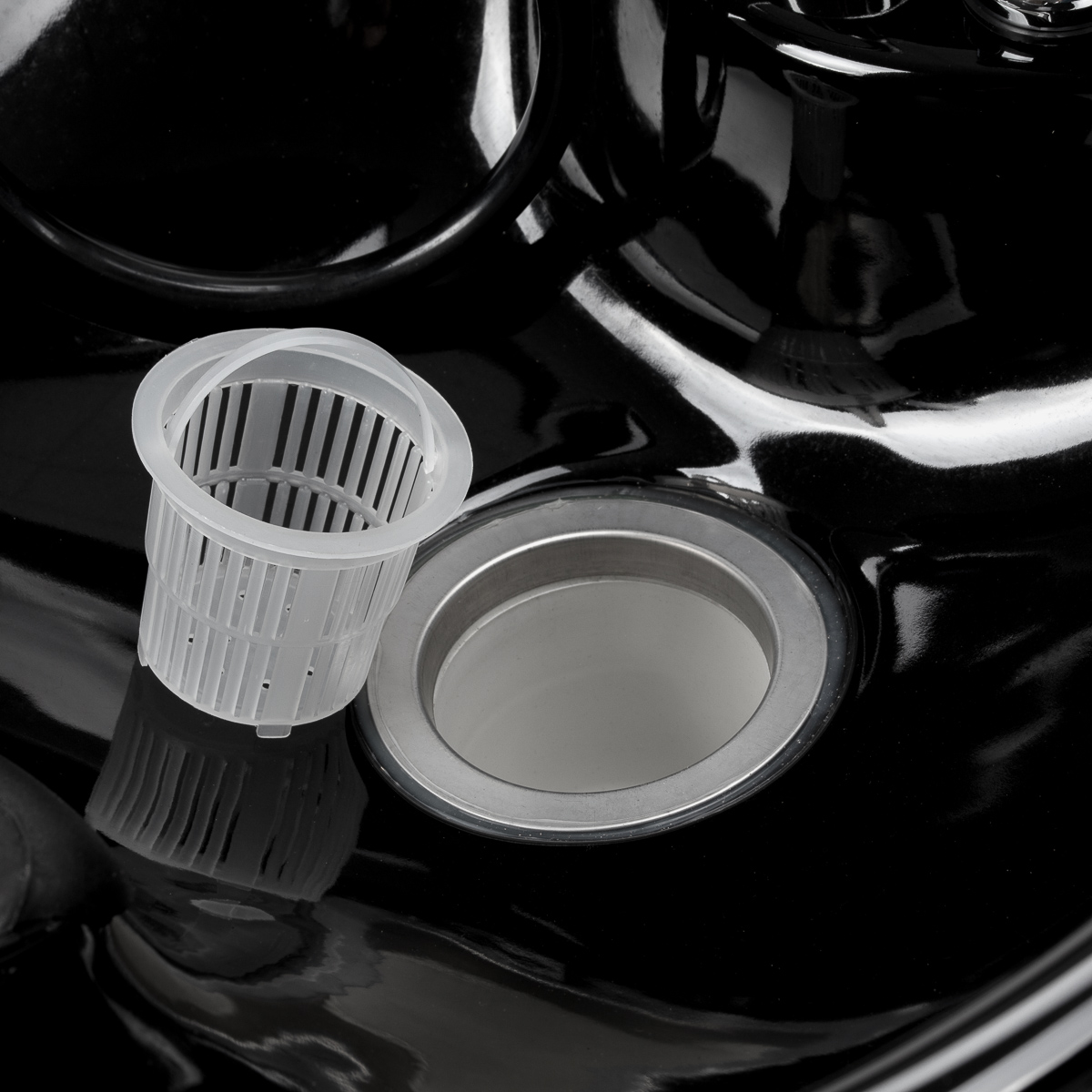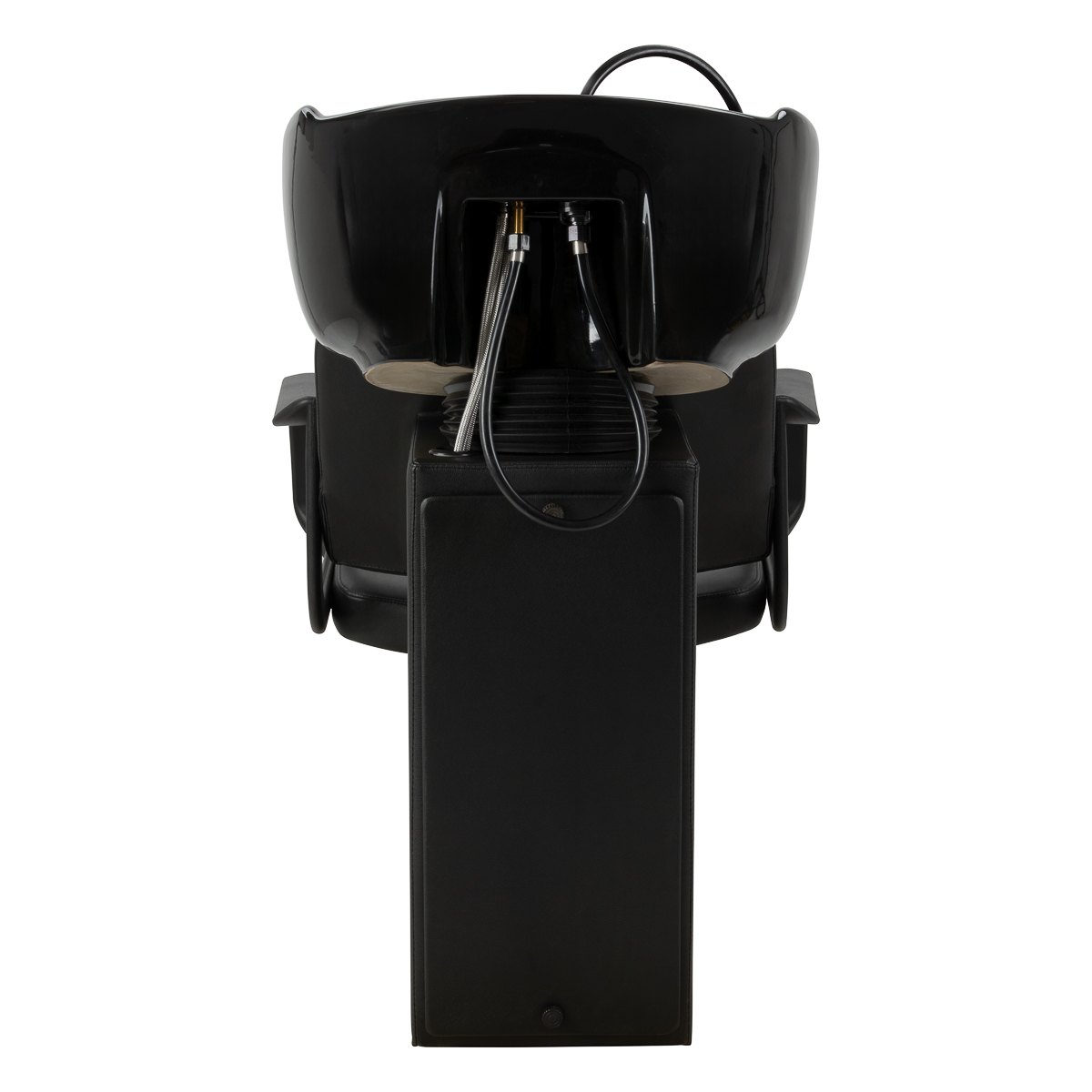 Komfortowe użytkowanieGłęboka ceramiczna misa w odcieniach czerni skutecznie ogranicza rozchlapywanie wody i kosmetyków, pomagając utrzymać porządek na stanowisku pracy. Regulowany kąt nachylenia umożliwia dopasowanie jej ustawienia do wzrostu klienta oraz preferencji fryzjera, zwiększając ergonomię wykonywanych usług. Trwała ceramika wyróżnia się odpornością na przebarwienia, zarysowania oraz działanie środków chemicznych, a gładka powierzchnia ułatwia utrzymanie wysokiego poziomu higieny. Wyprofilowany kołnierz zapewnia stabilne podparcie głowy, natomiast nakładka z tworzywa sztucznego eliminuje uczucie chłodu podczas kontaktu z misą.